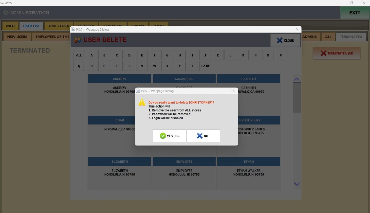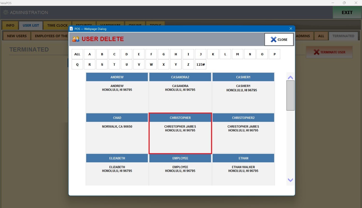 Press on the employee you want to terminate.