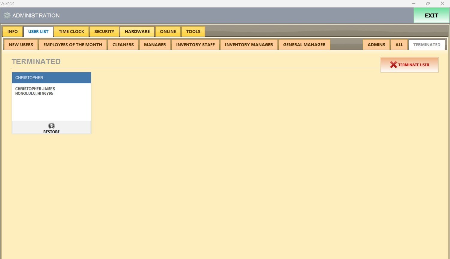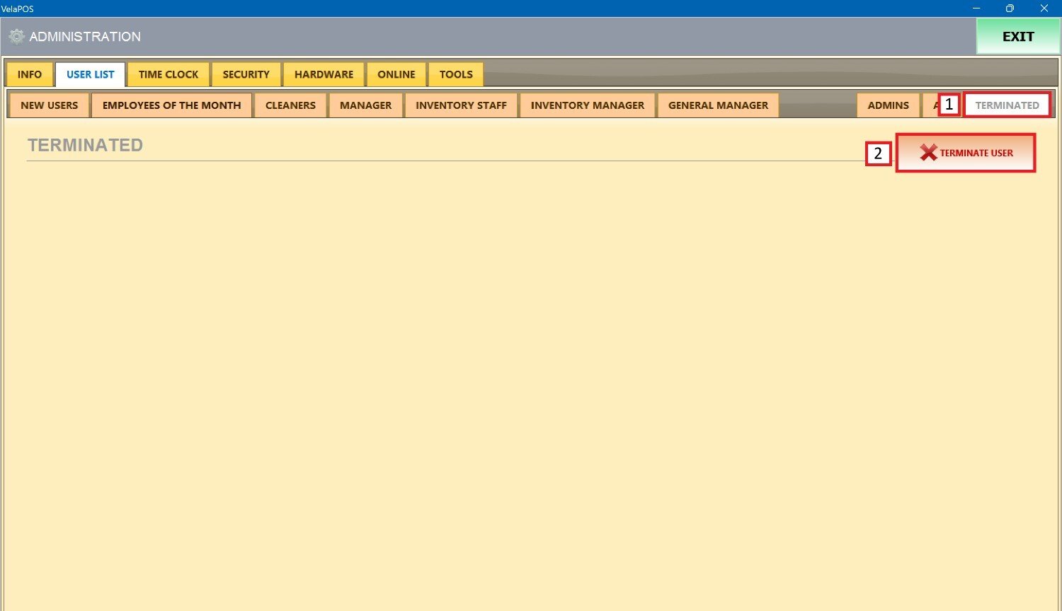 On USER LIST, go to the TERMINATED tab and press TERMINATE USER.