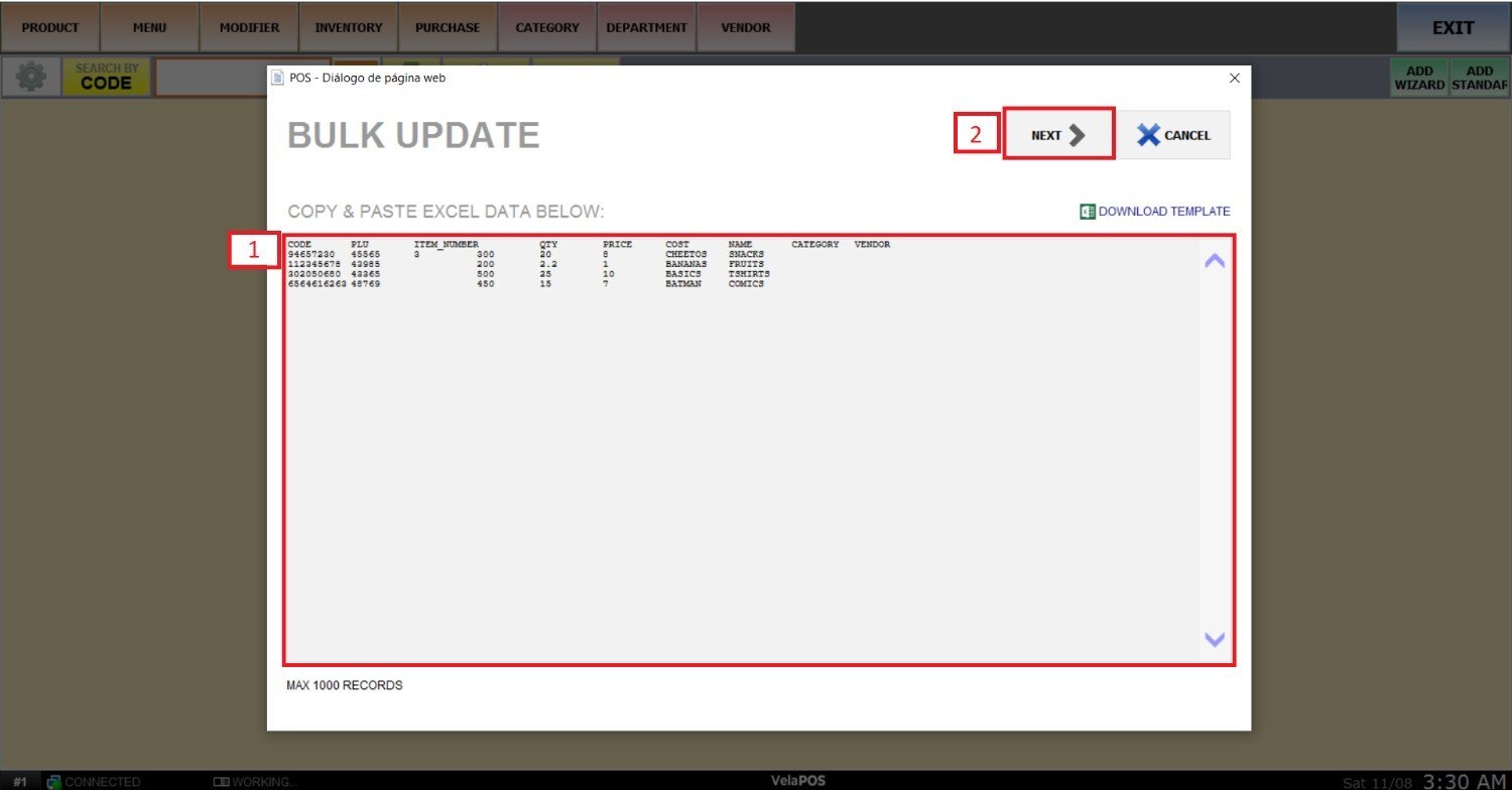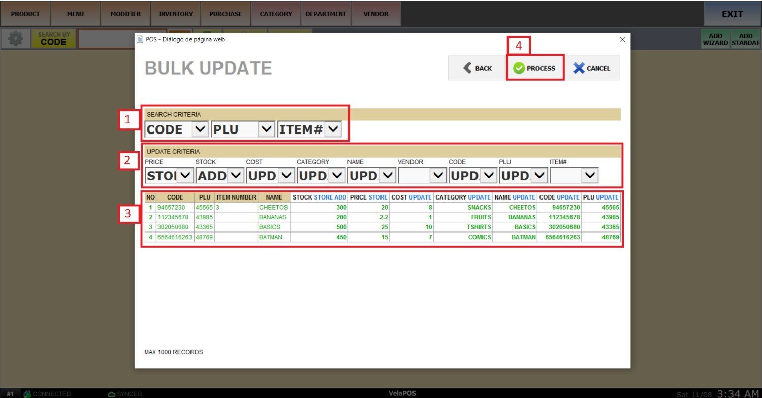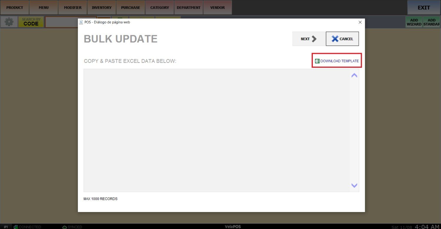 Note: To perform a bulk update, you have to Export the Product List from the system, or have the Product Code, PLU, or Product Number available.