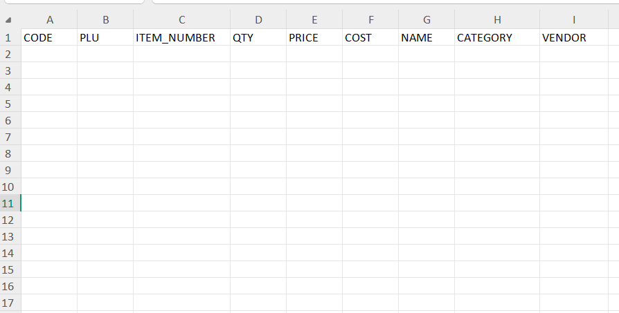 Fill in the excel with the products information you want to update plus one of the three search criteria for the system to recognize the product: CODE, PLU or ITEM #. Find this information on the exported product list file.