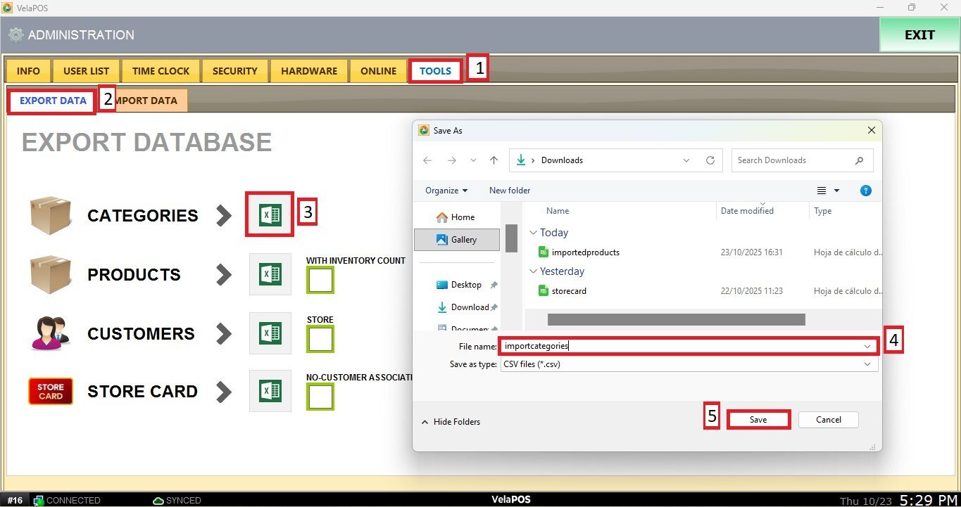 MENU> ADMINISTRATION> TOOLS> EXPORT DATA> CATEGORIES