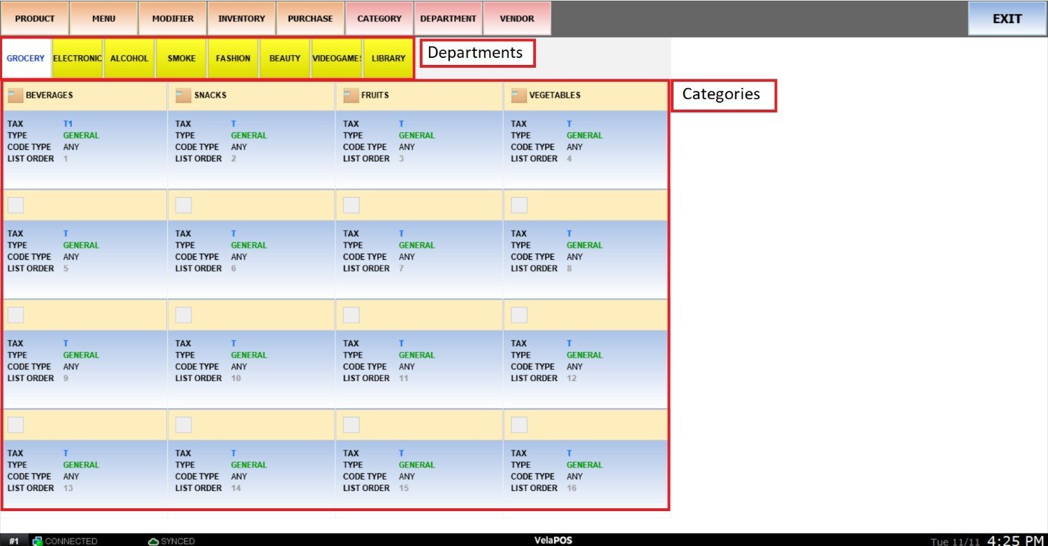 You can view the imported inventory departments and categories. To manually edit or modify them, refer to Creating Inventory Department and Creating Inventory Category.