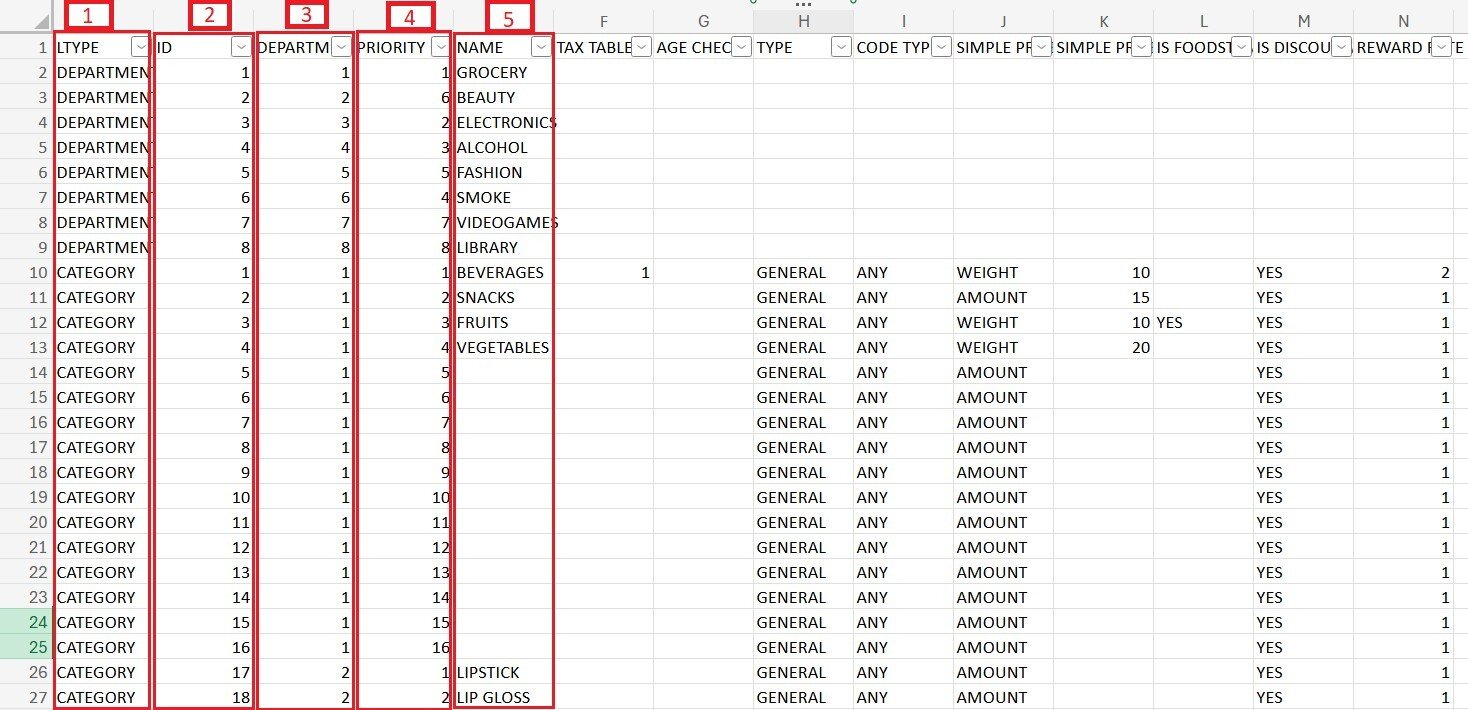 1. LTYPE: Defines whether the entry is a Department or Category.