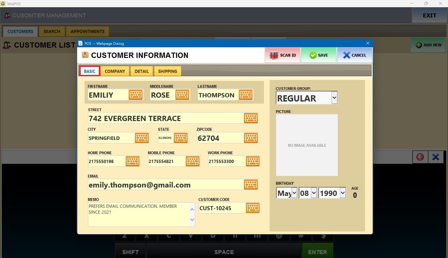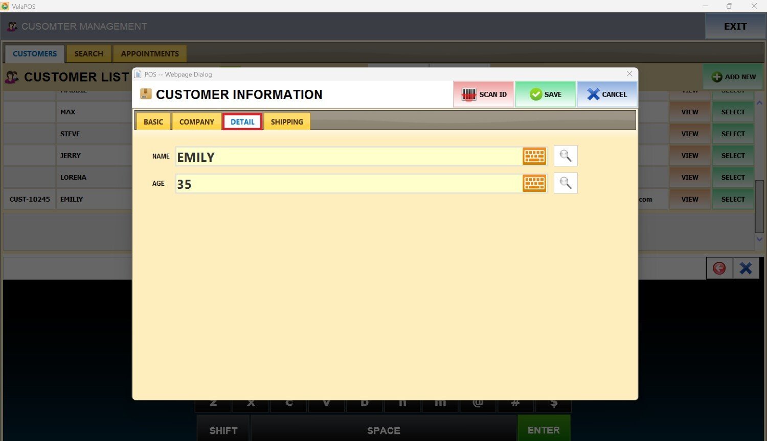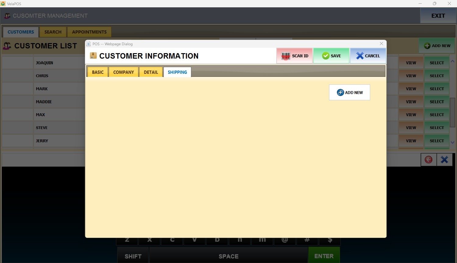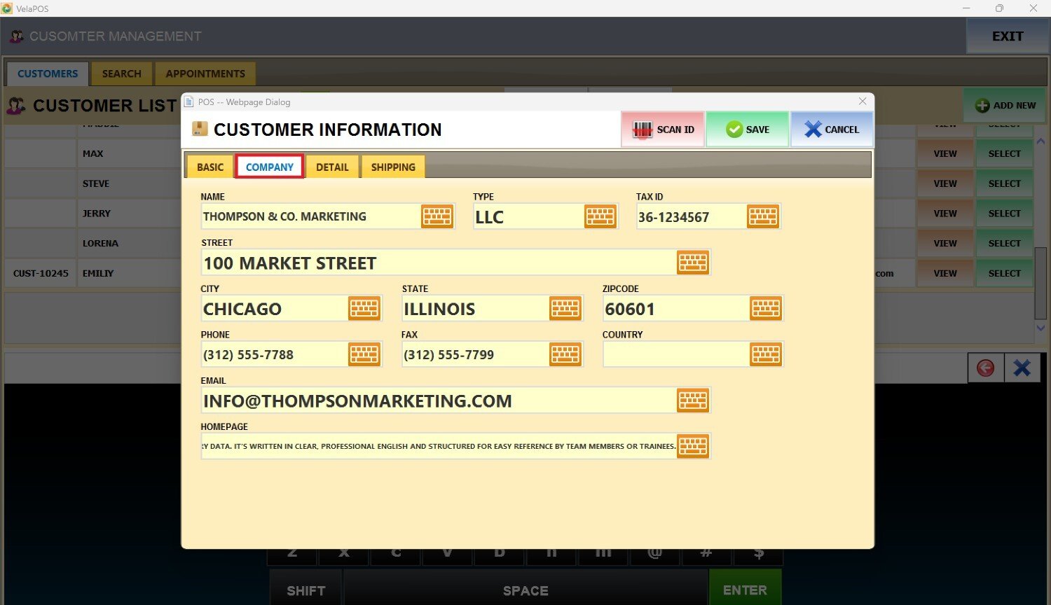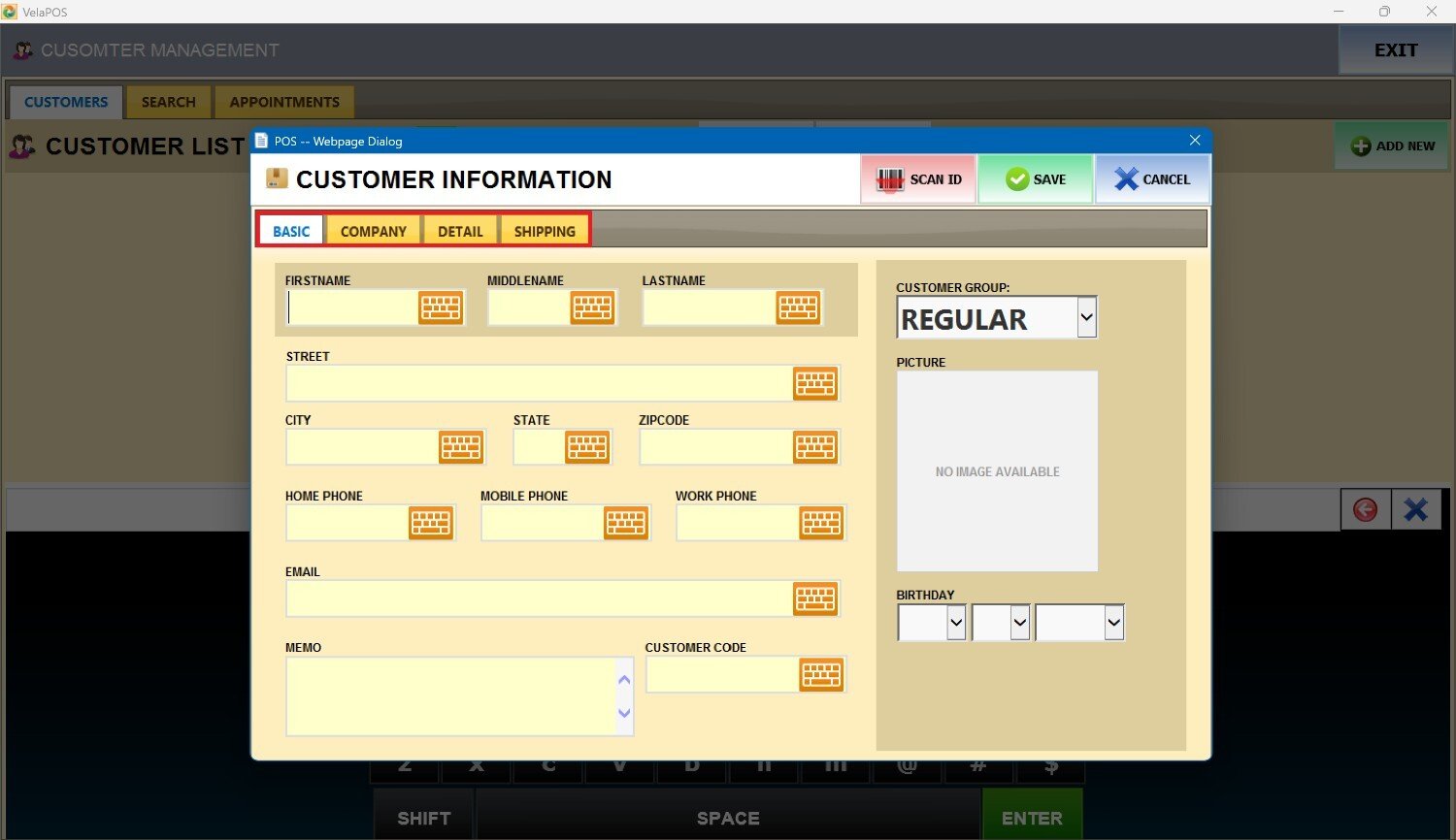 Or fill out the customer's information that is divided into four tabs: BASIC, COMPANY, DETAIL, and SHIPPING.