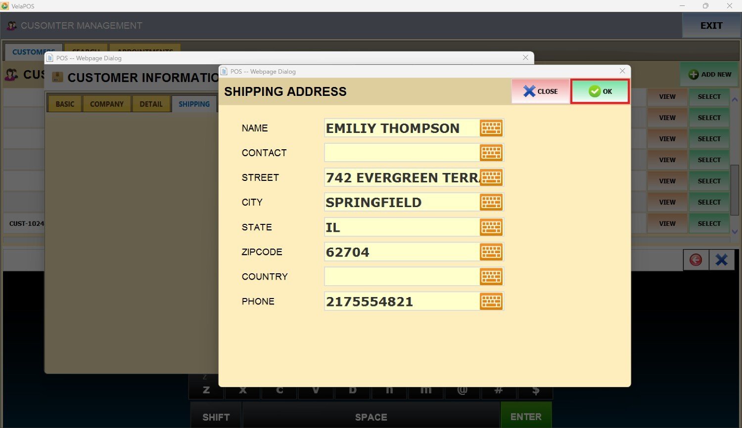 Press ADD NEW to open the SHIPPING ADDRESS screen, allowing you to modify the details.