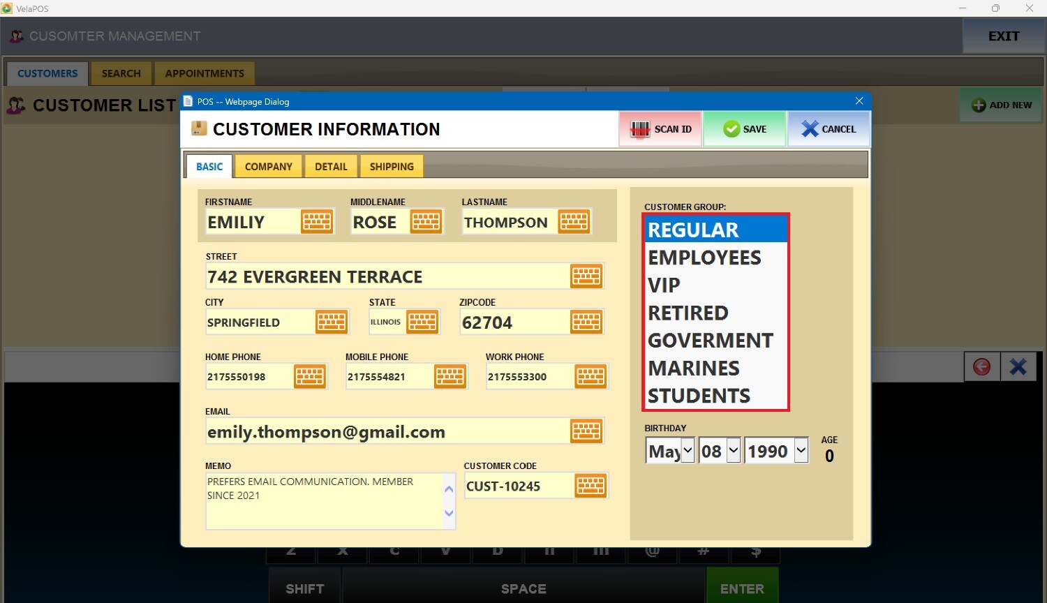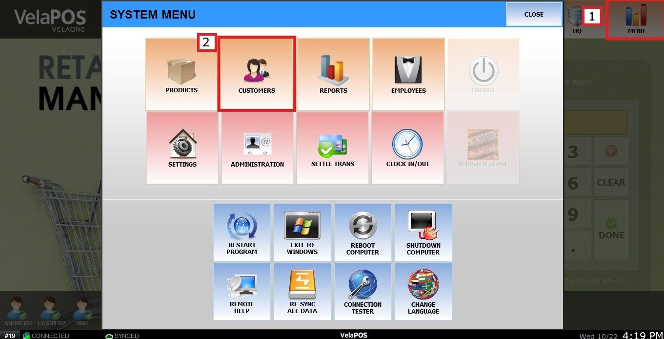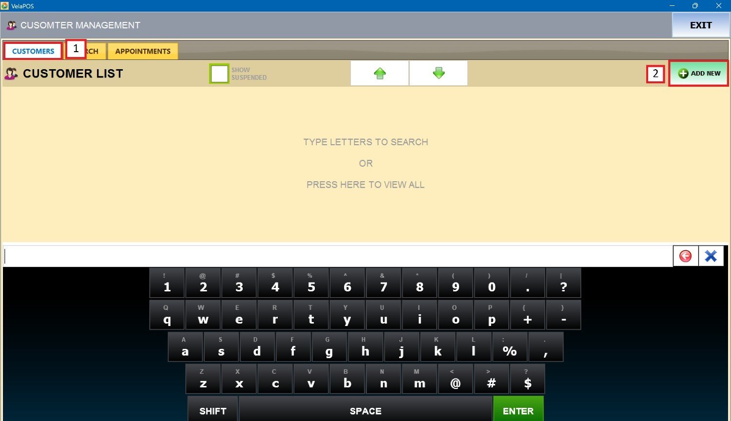 Main Screen> MENU> CUSTOMERS> CUSTOMERS tab