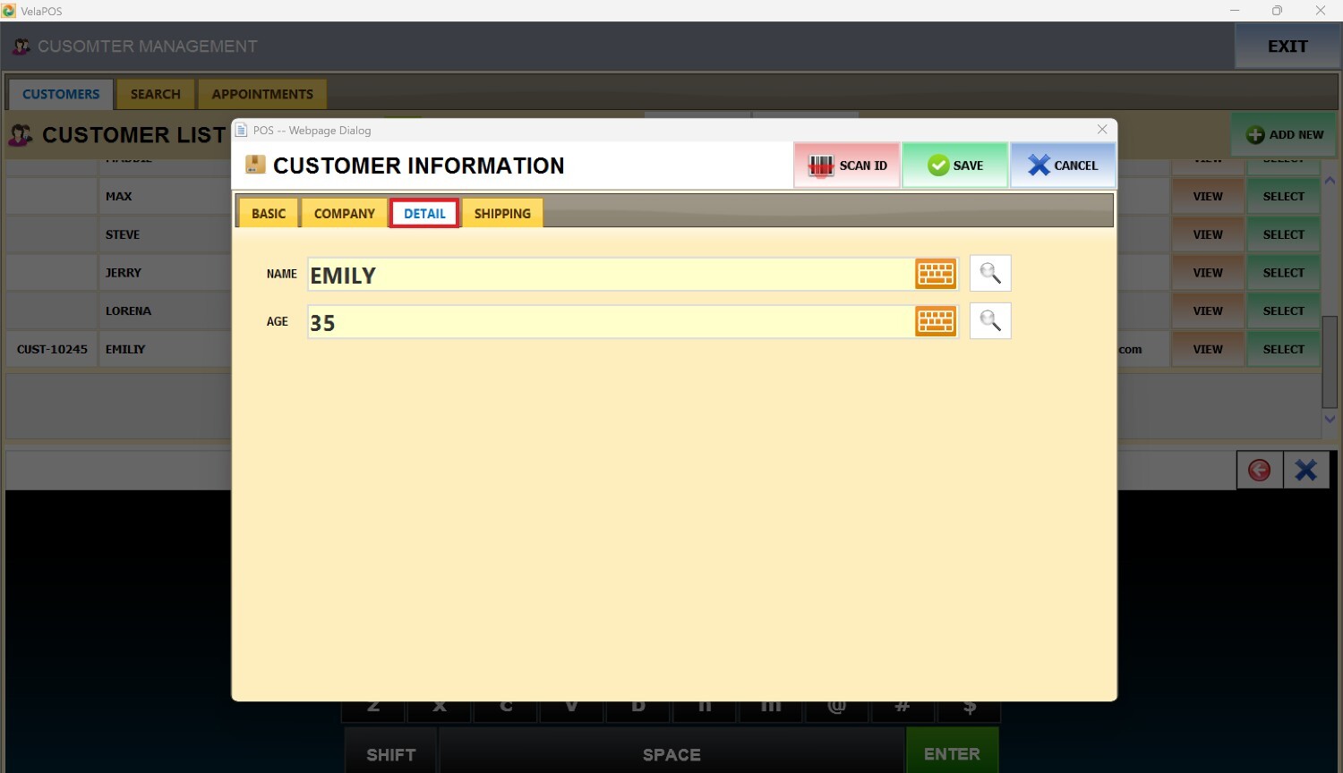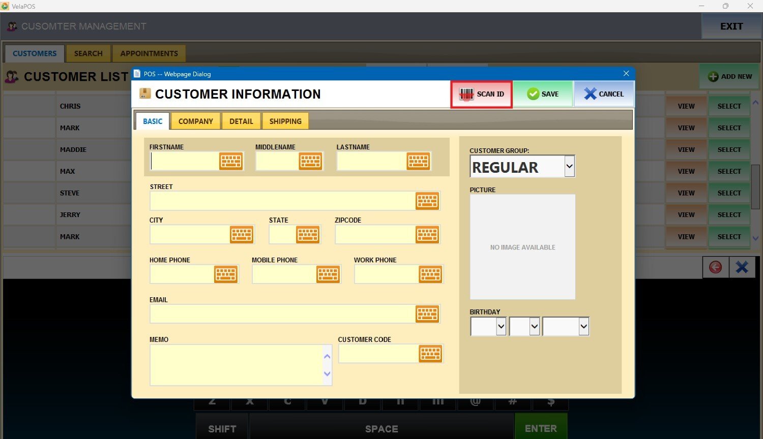 Press SCAN ID to scan the customer's identification and add them to the system.