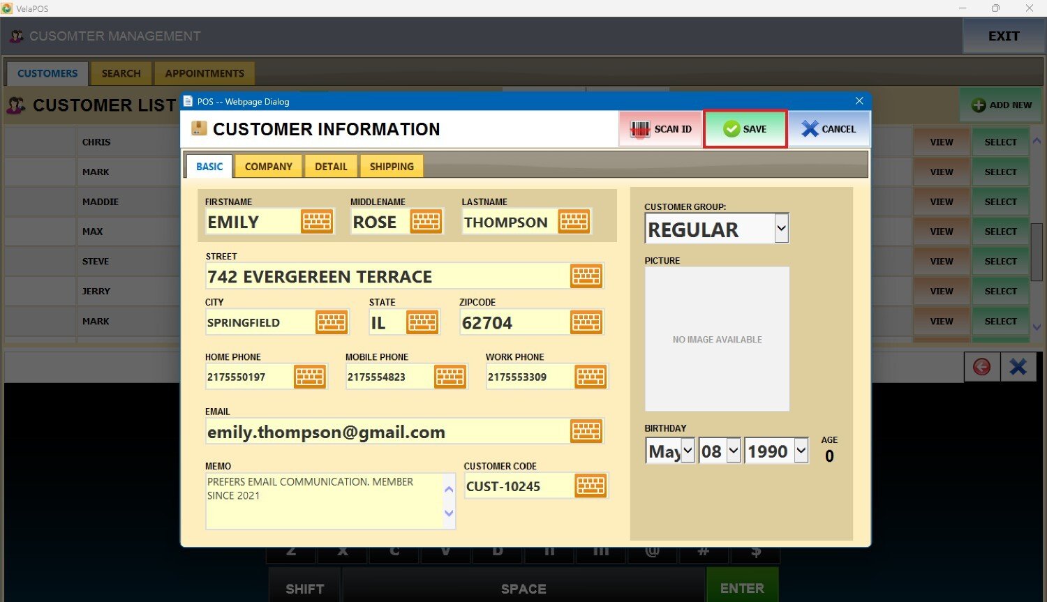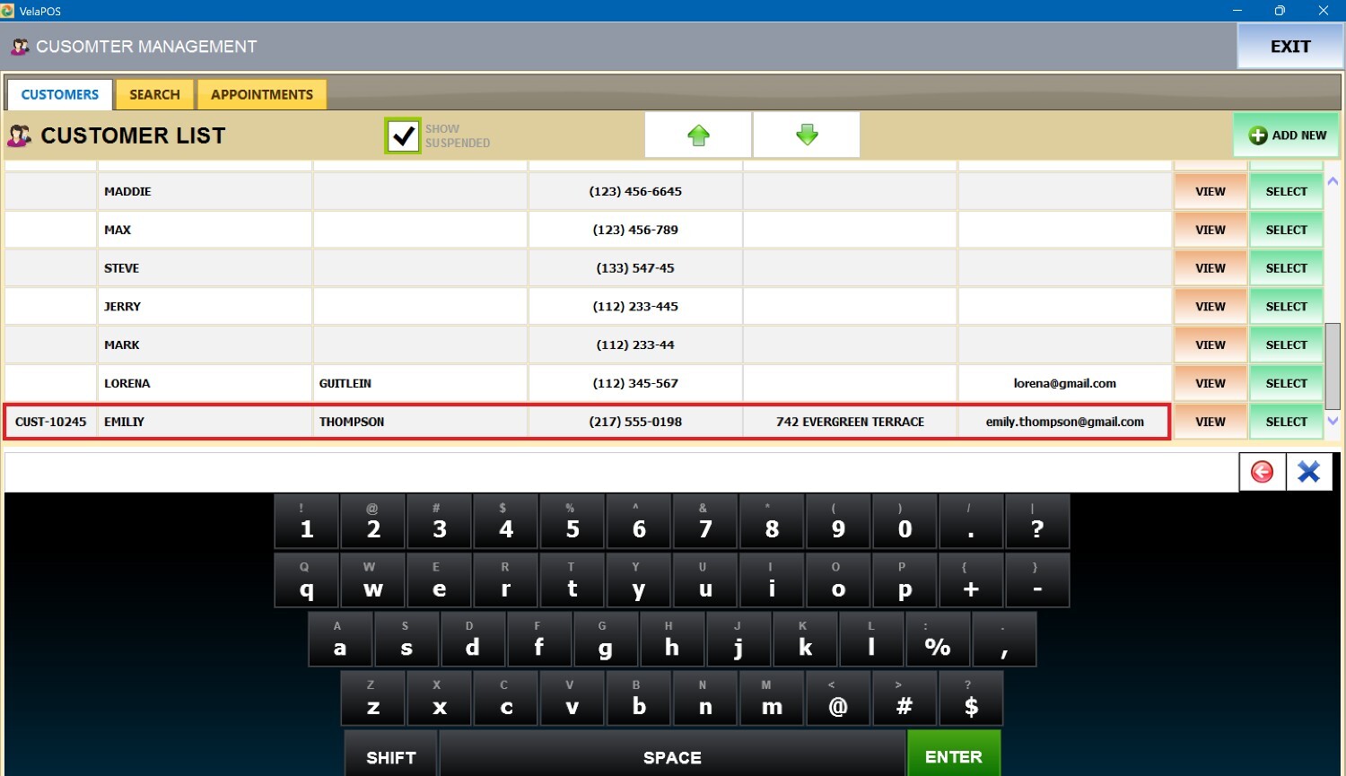 Hint: Press VIEW next to a customer to display their information screen, allowing you to verify or update any data as needed.
