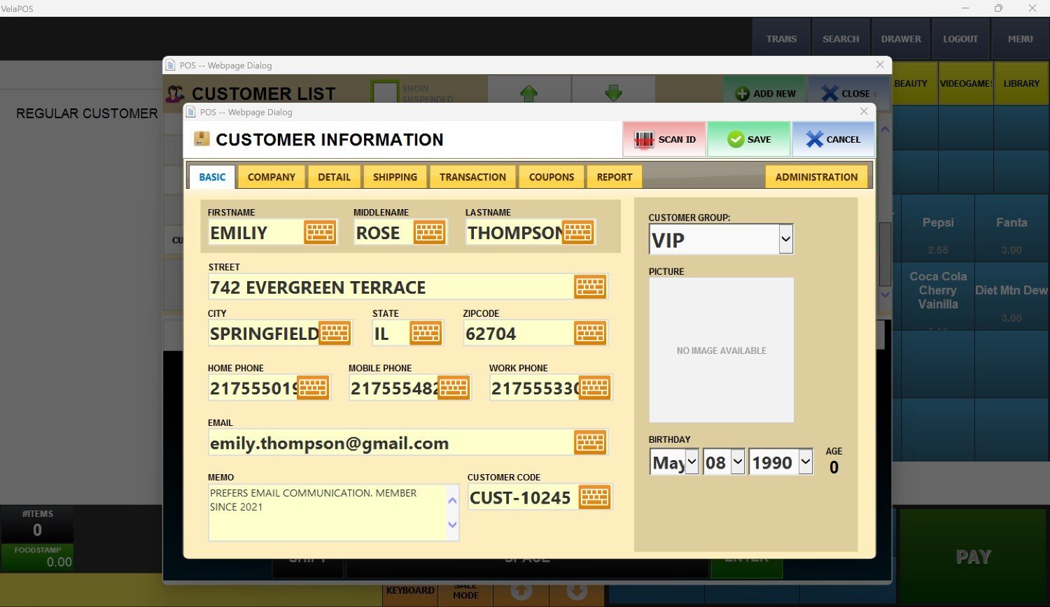 Hint: If the customer account hasn't been created yet, press ADD NEW in the pop-up window and you'll be able to enter the details. Press SAVE to register them in the system.