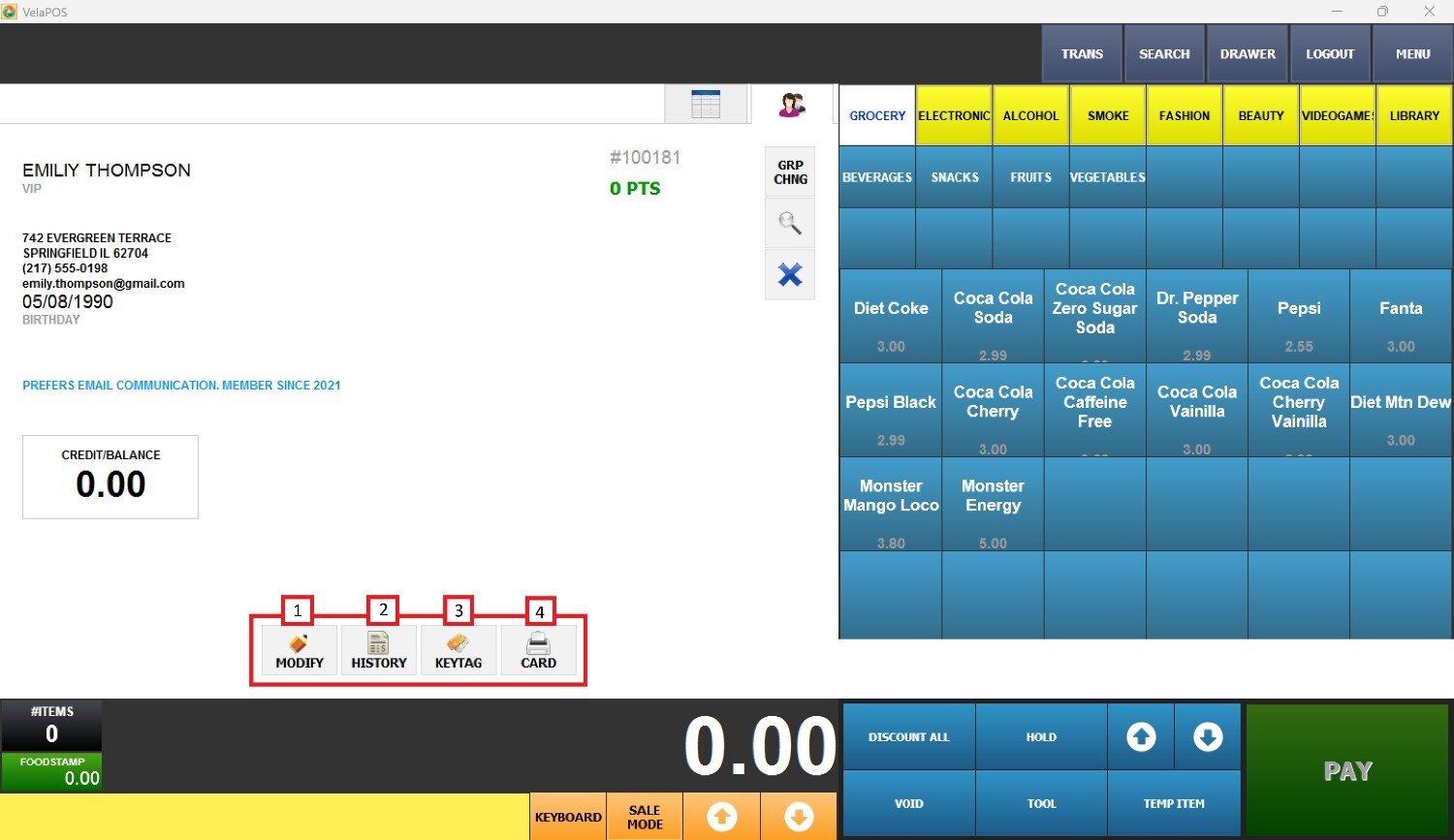 Main Screen> Number Pad> Sales Screen> Customer tab