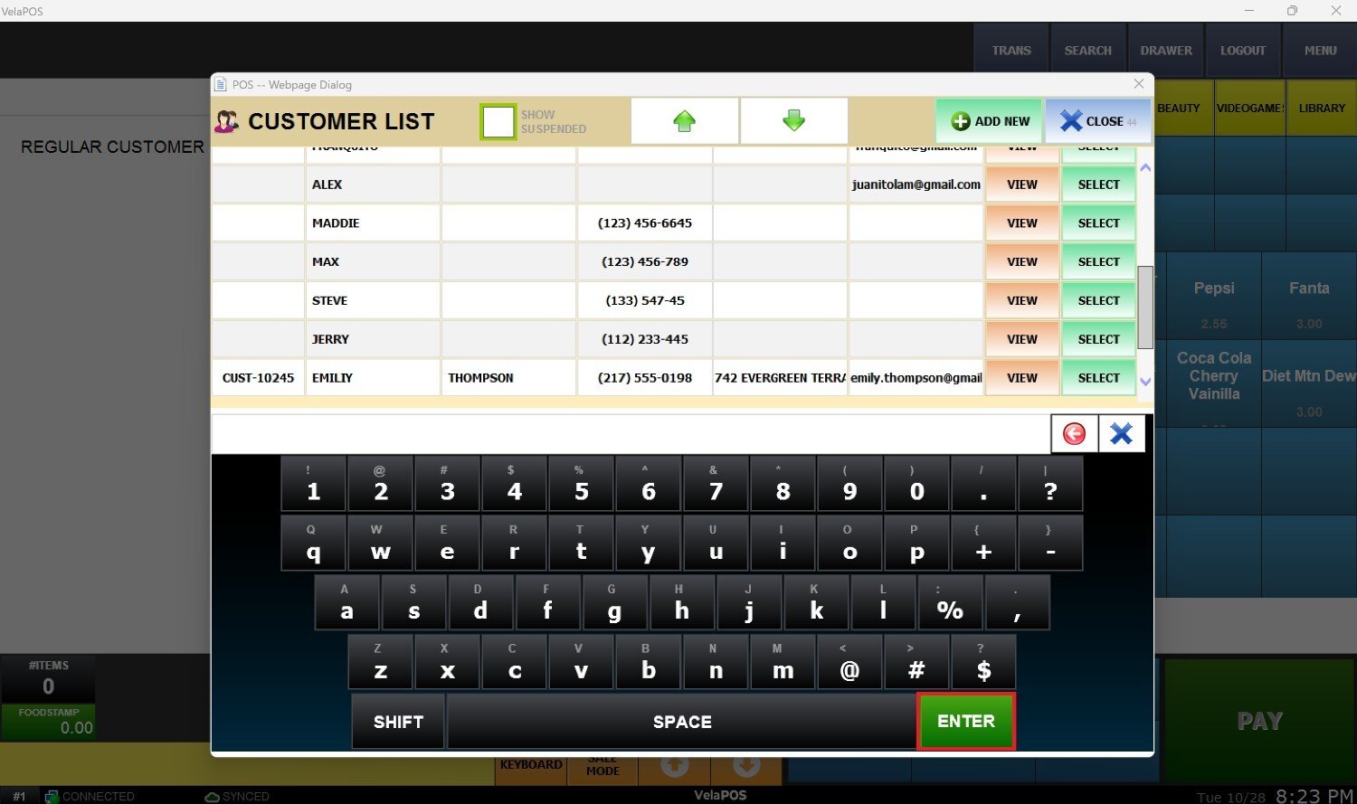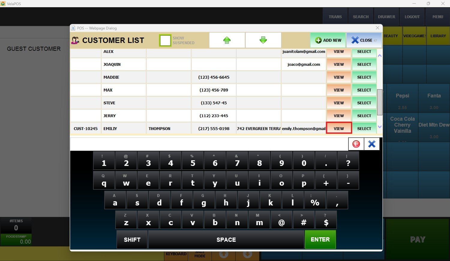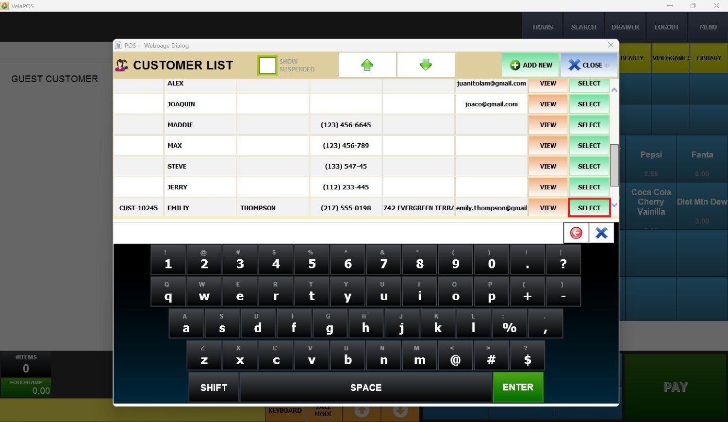 Once you've found the correct customer, press SELECT to link the customer account to the transaction.