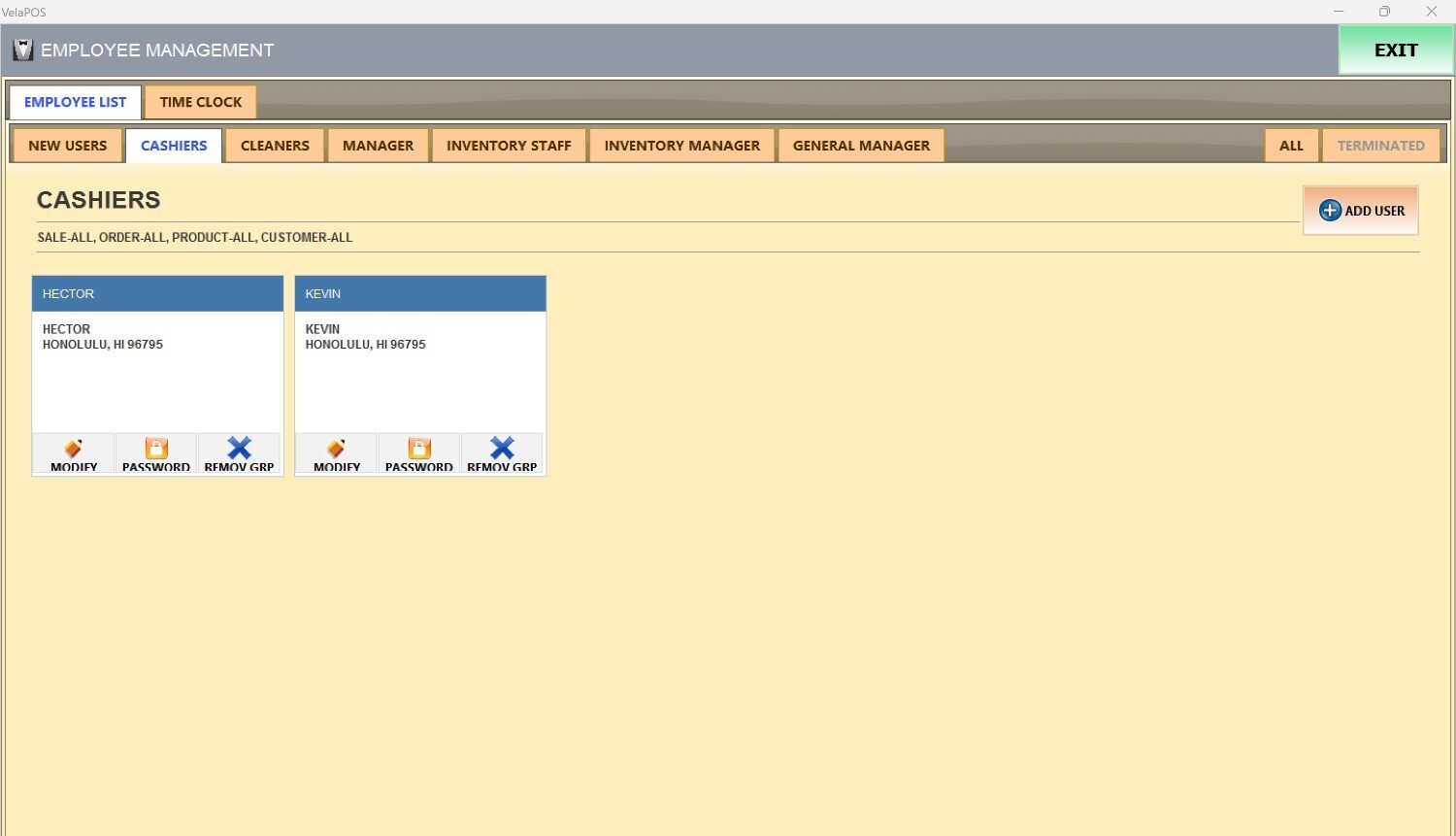 Main Screen> MENU> EMPLOYEES> EMPLOYEE LIST