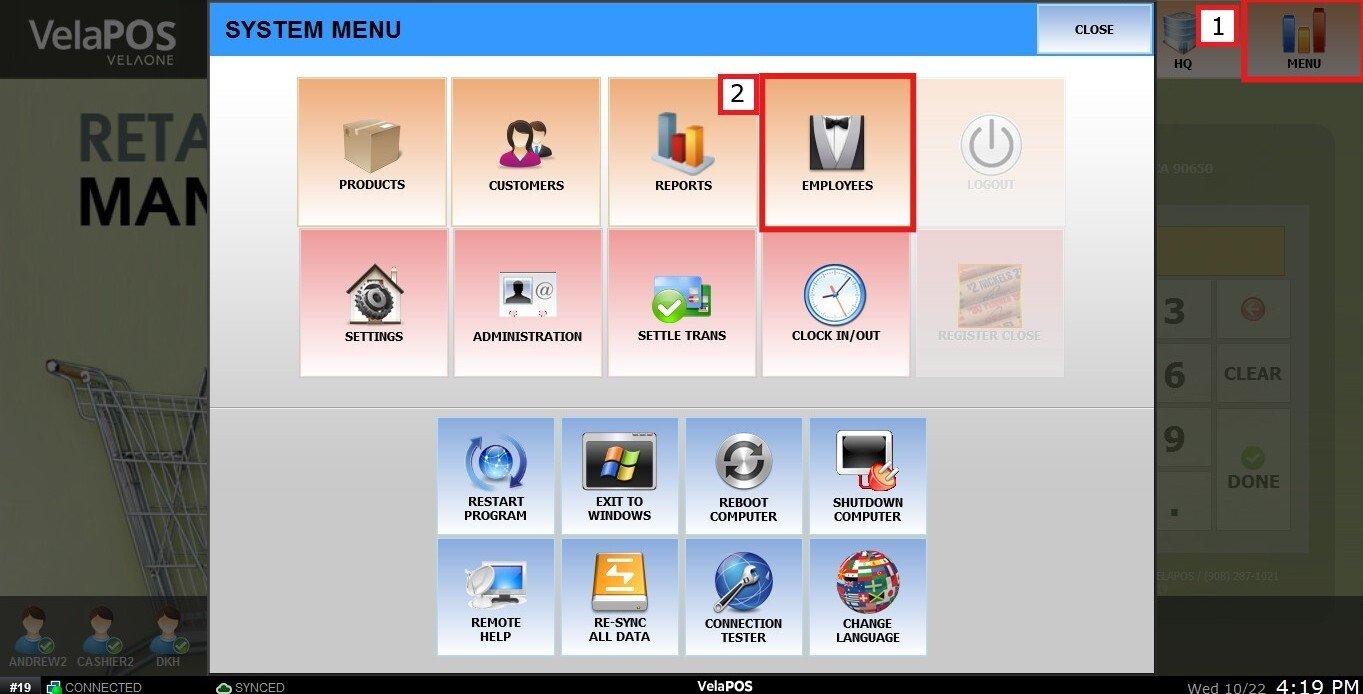 Go to MENU and press EMPLOYEES