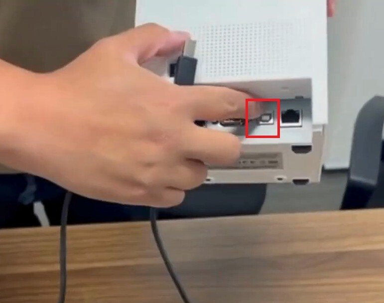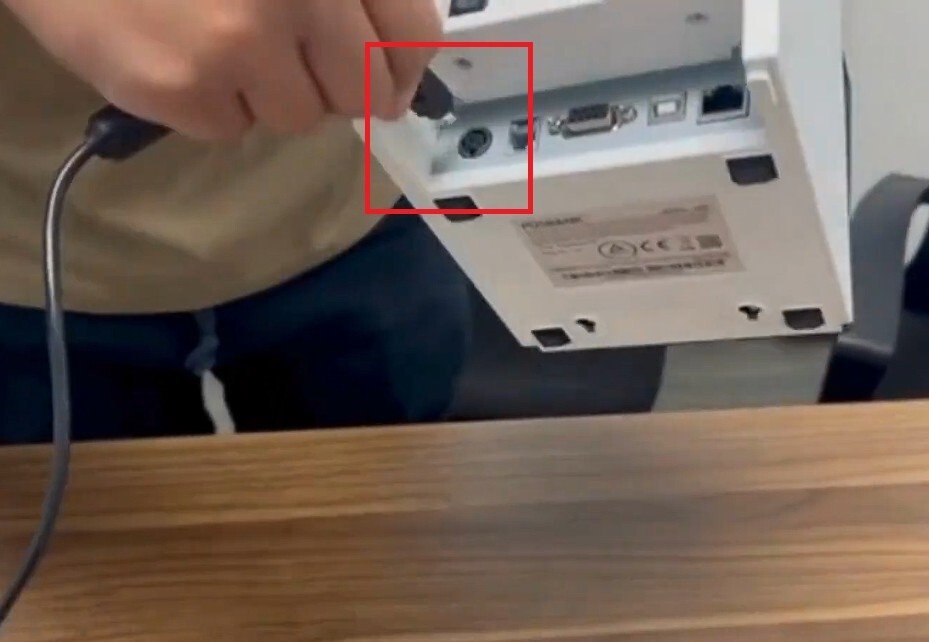 Flip the receipt printer back and locate the USB socket. Connect the USB to the appropriate socket.