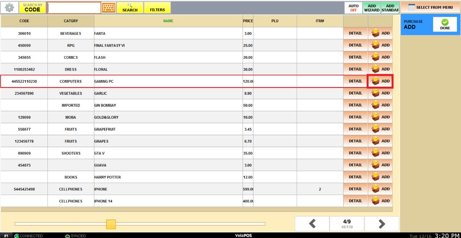 Hint: You can add new products from this screen by pressing on ADD WIZARD or ADD STANDARD.