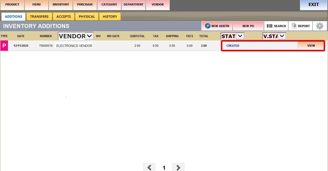 MENU > PRODUCTS > INVENTORY > ADDITIONS > NEW PO
