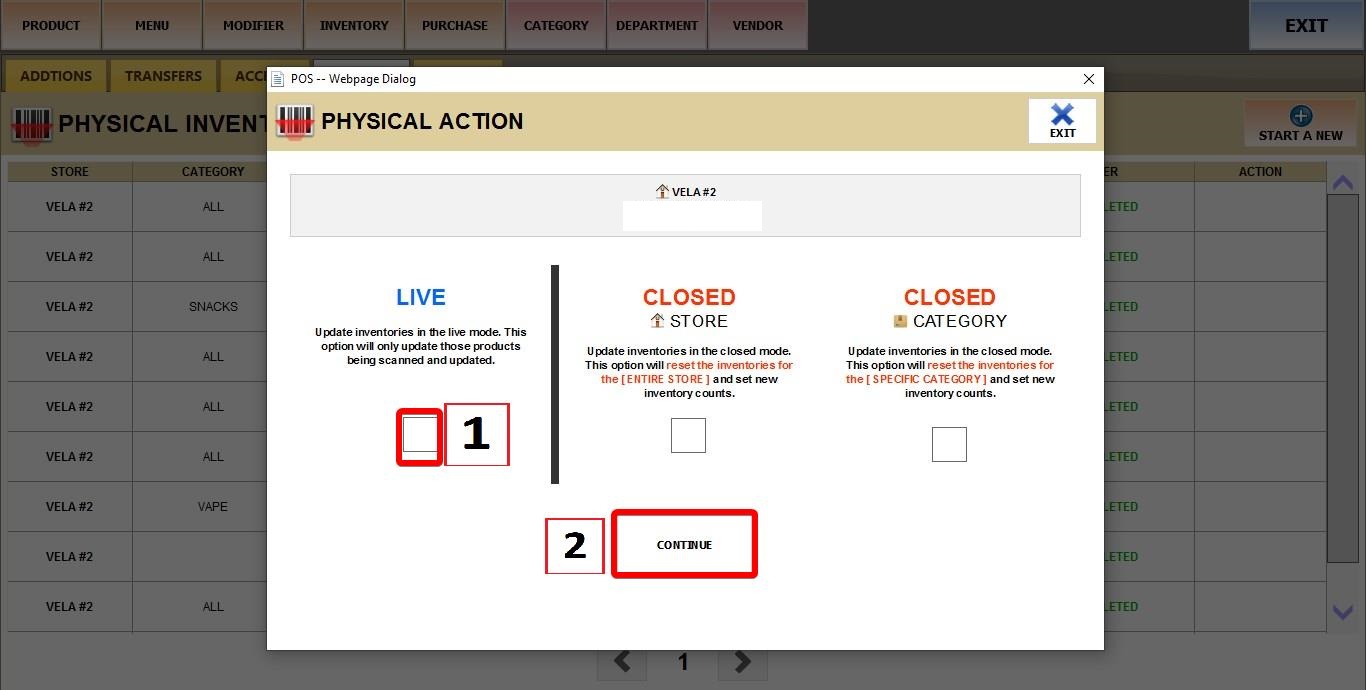MENU > PRODUCTS > INVENTORY > PHYSICAL > START A NEW.