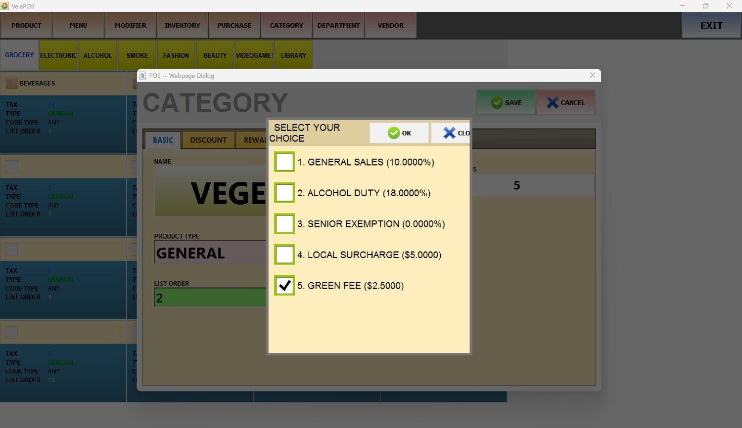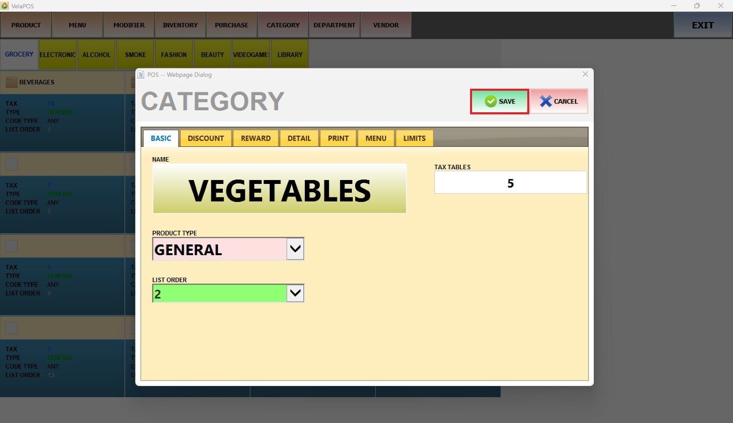 This feature allows you to name a category or edit its name, define its products' type, reorder its position, and apply a tax to the entire category.