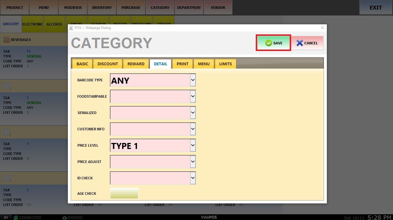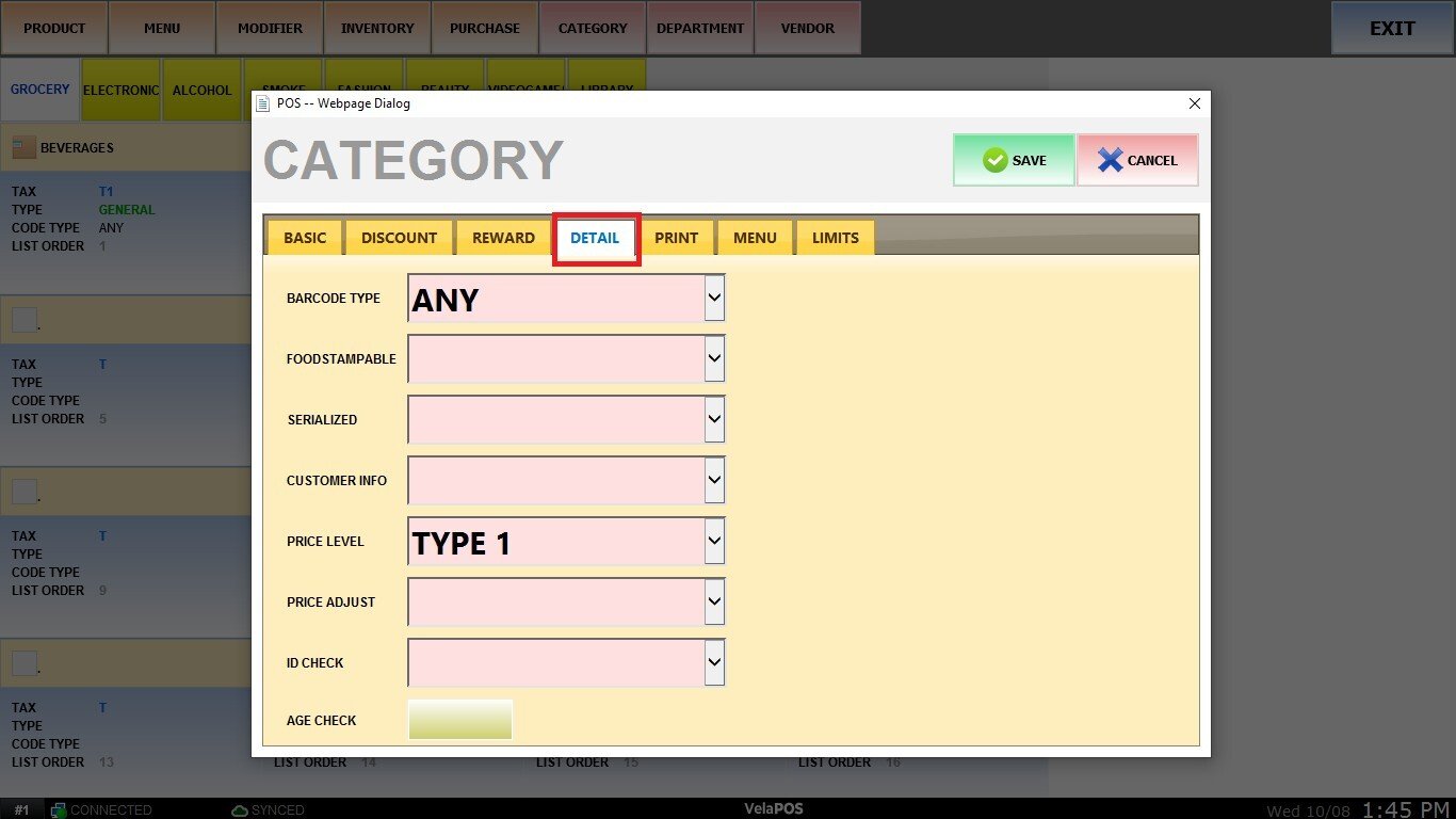 This section allows you to configure and customize details for a specific category, it defines how items are processed and displayed during sales. All the settings applied to the category will be inherited to the items within it.