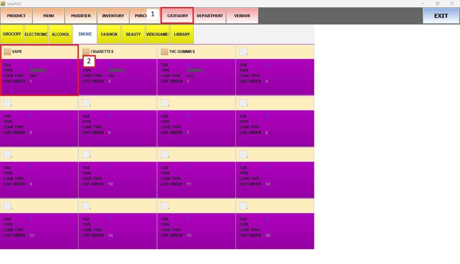 Main Screen> MENU> PRODUCTS> CATEGORY> LIMITS tab.