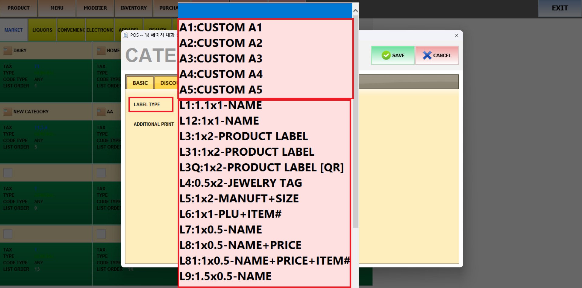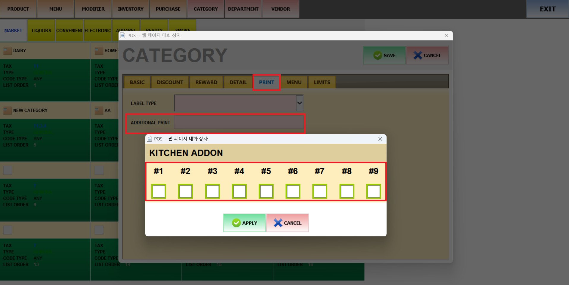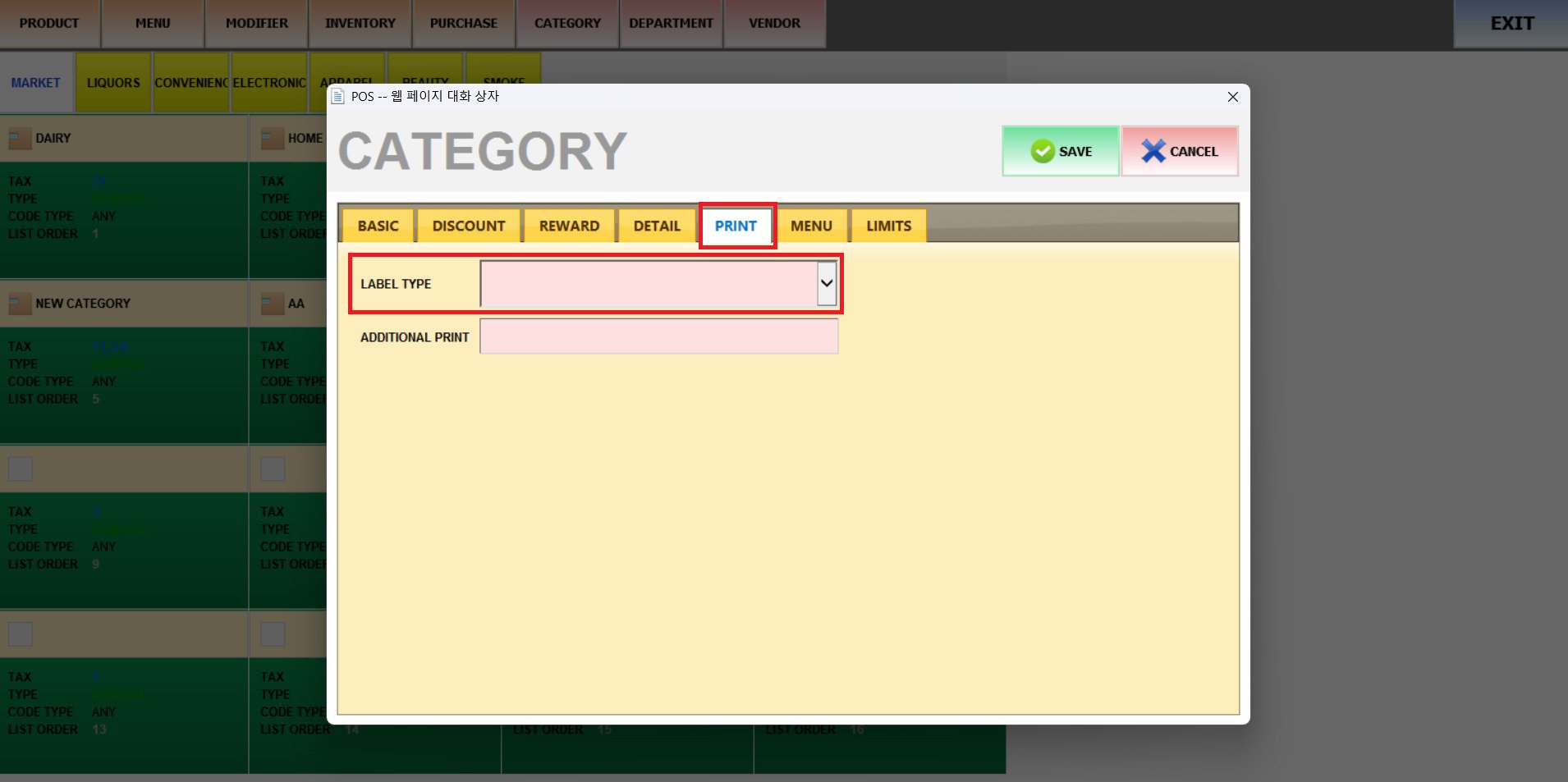 With this feature, assign a type of label and a specific printer for the products within the category.