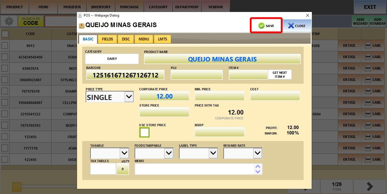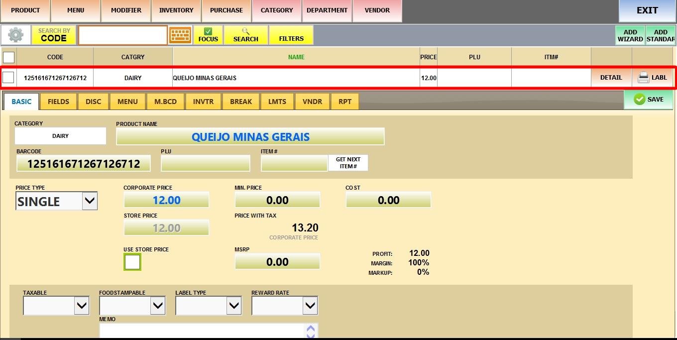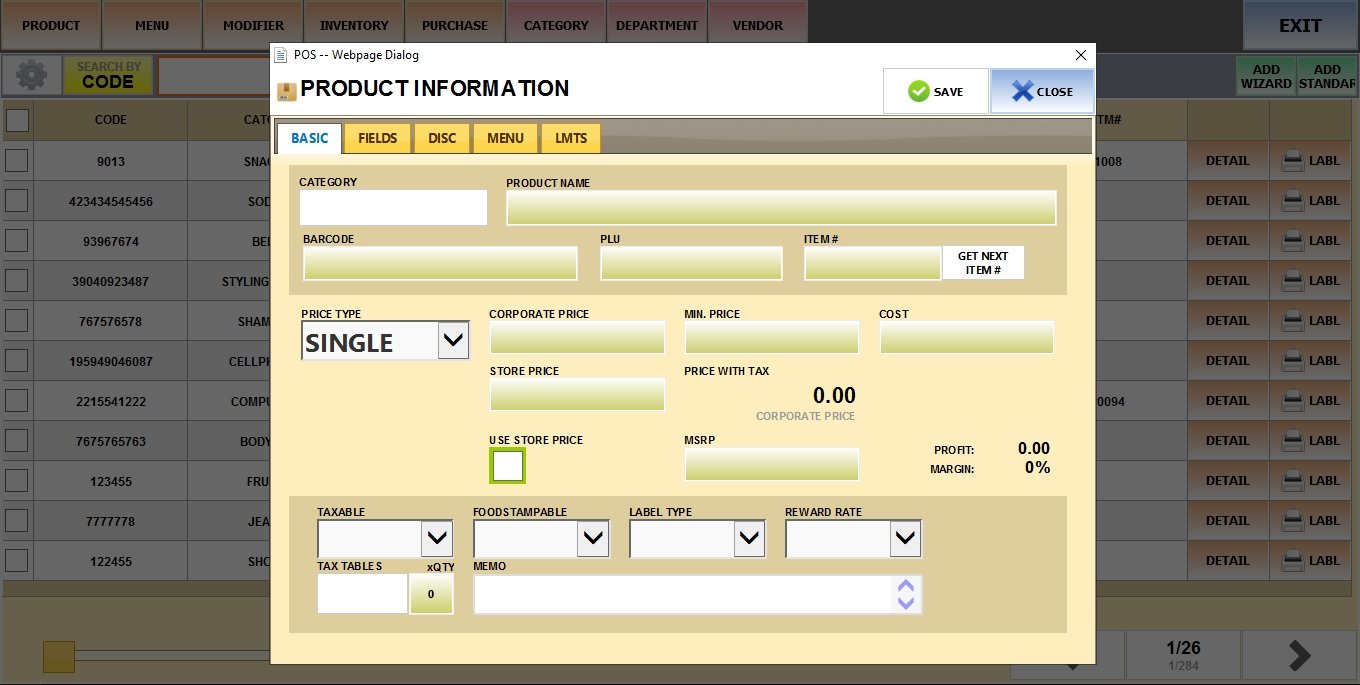 Numerous detail fields will appear. The minimal required information to successfully create the product is the Product Name and the Category.