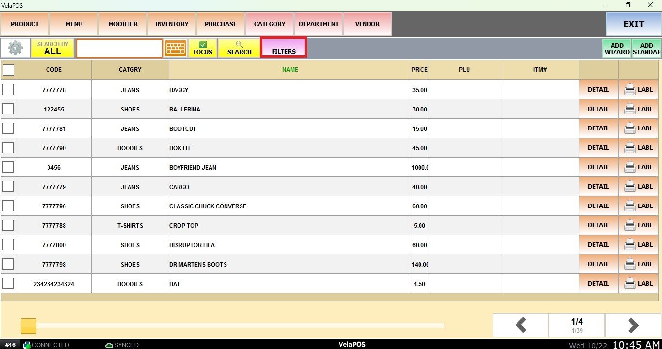 This feature allows you to refine your inventory view through different filtering options. It’s particularly useful for businesses with a large product catalog that need to efficiently locate specific items.