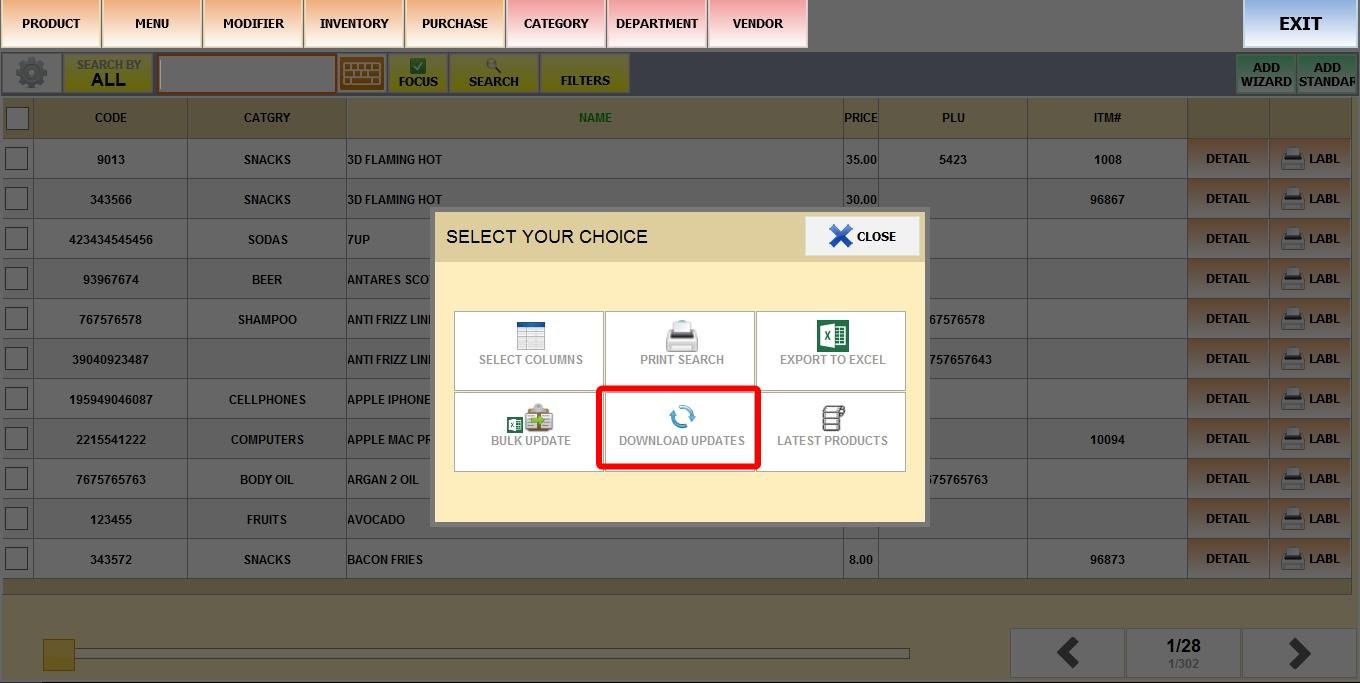 MAIN SCREEN> MENU > PRODUCTS> GEAR ICON> DOWNLOAD UPDATES.