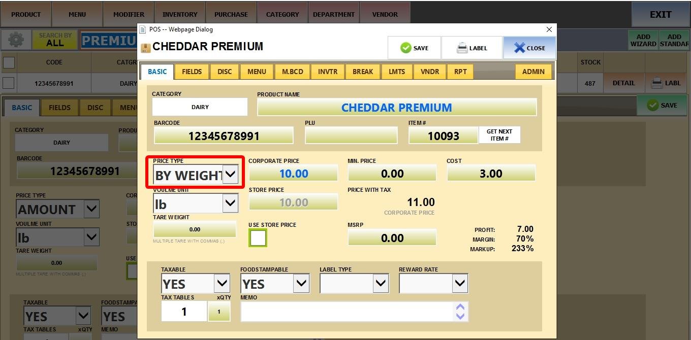 MENU > PRODUCTS> Select an Item> DETAIL> BASIC> PRICE TYPE.