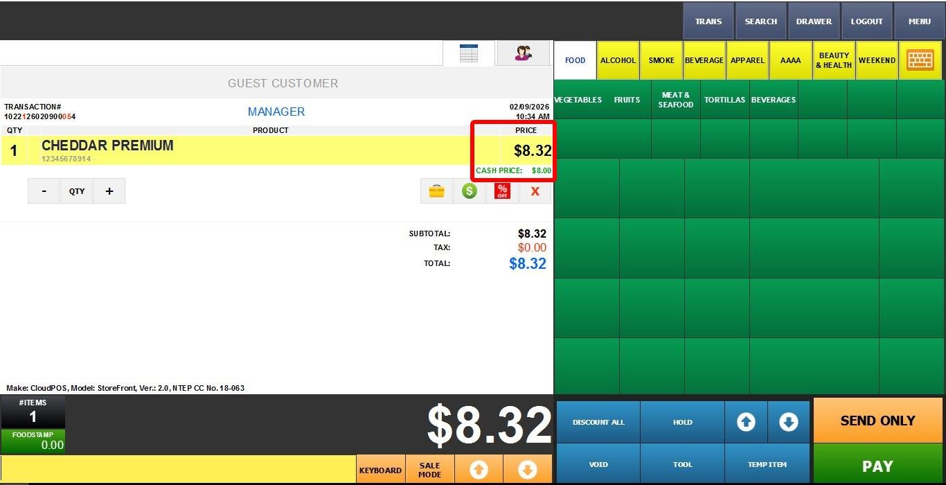 Hint: The Sales screen prices may appear higher than the product detail price due to the Credit Payment Adjust feature. The SINGLE price type is shown as the Cash Price.