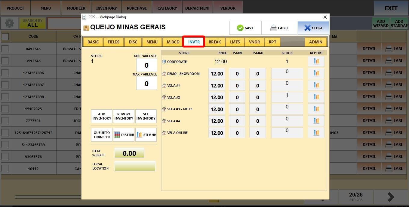 MENU > PRODUCTS> DETAIL> INVTR tab.