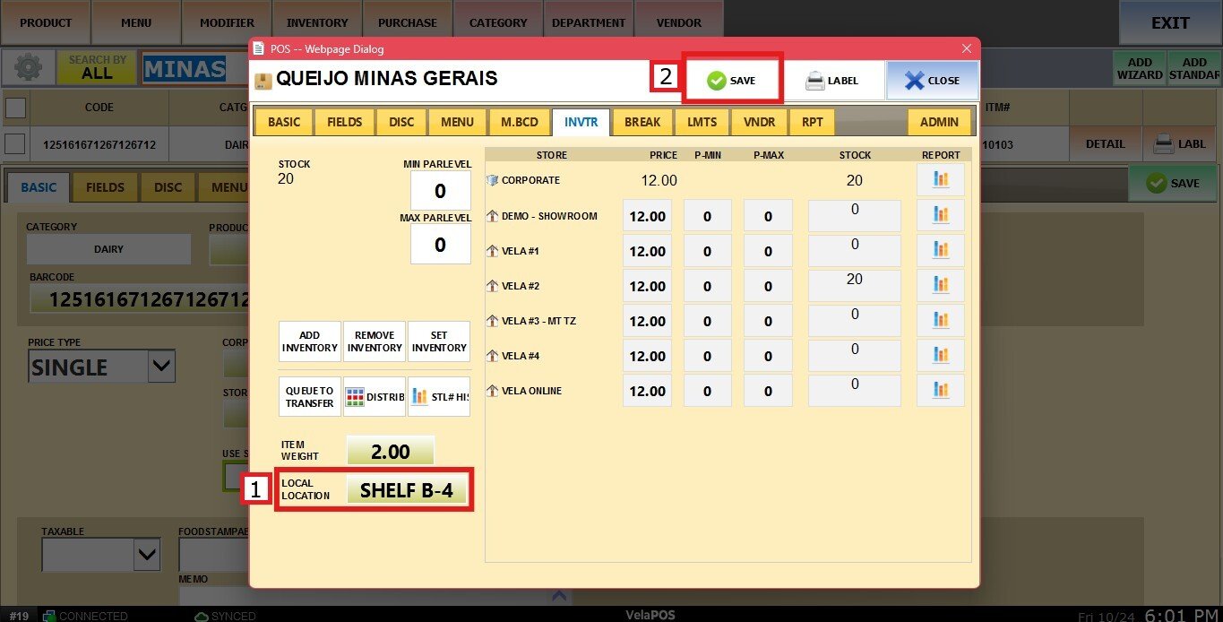 Input the product's location on the box, then click con SAVE.