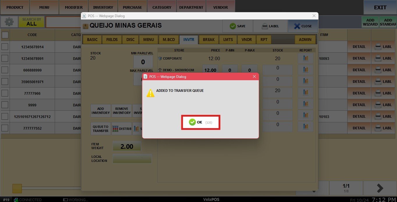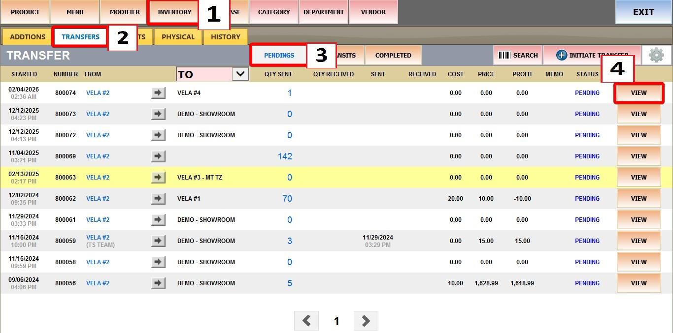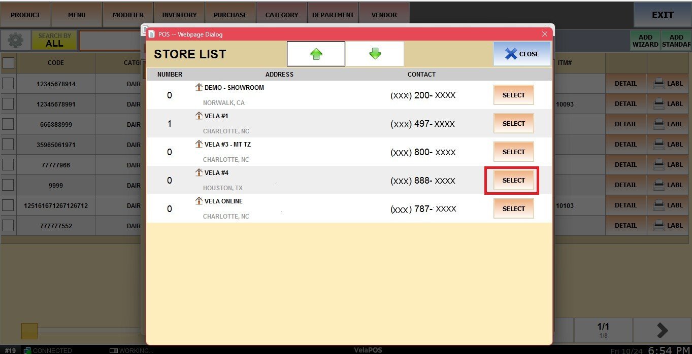 A pop-up window will appear displaying the available locations. Select the store you want to transfer to.