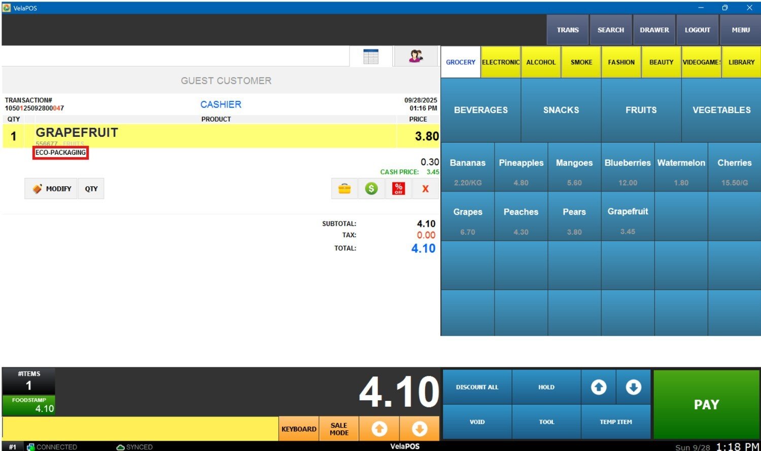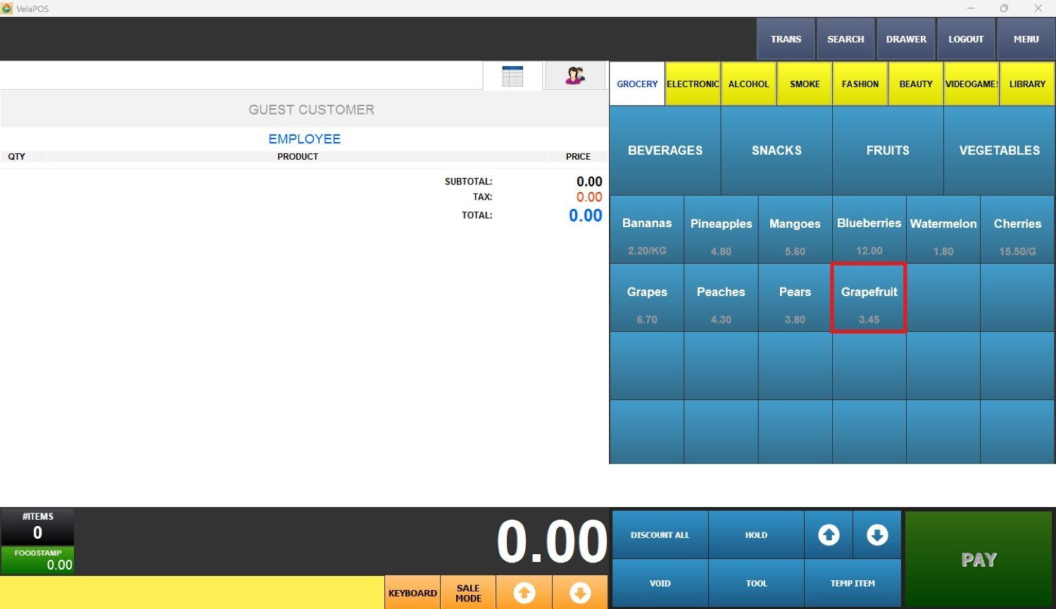On the Main Screen, go to MENU and press on PRODUCTS.
