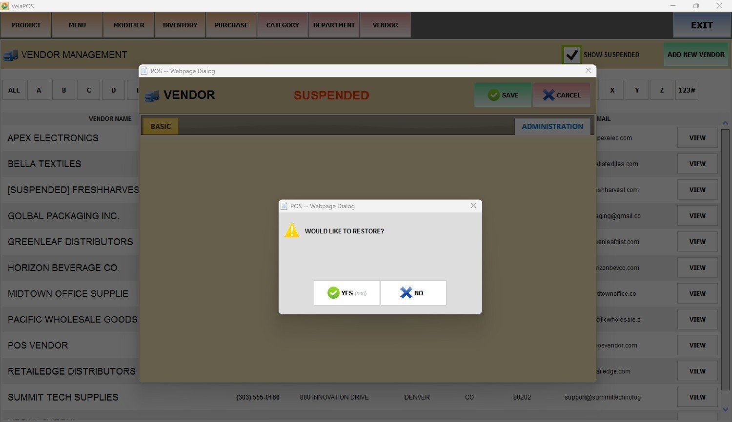 Press YES to complete the process, and the vendor will return to the supplier's main list.