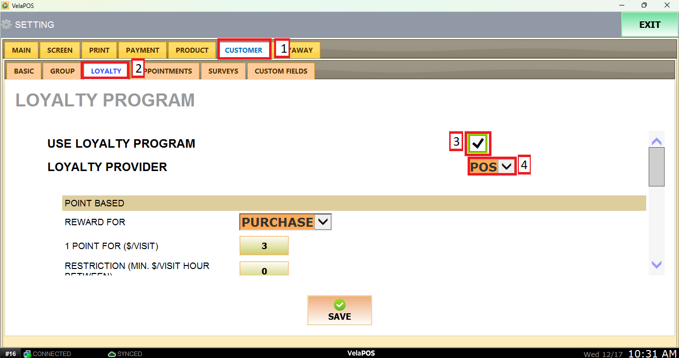 MENU> SETTINGS> CUSTOMER> LOYALTY