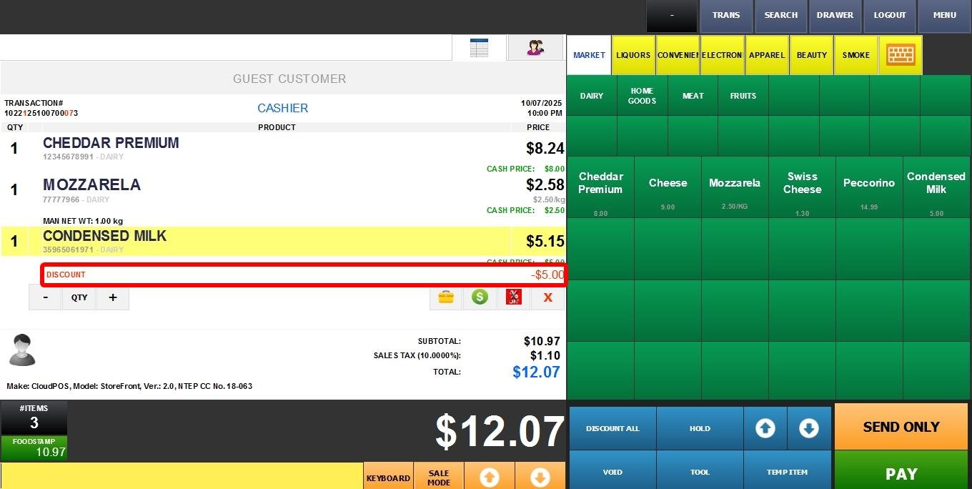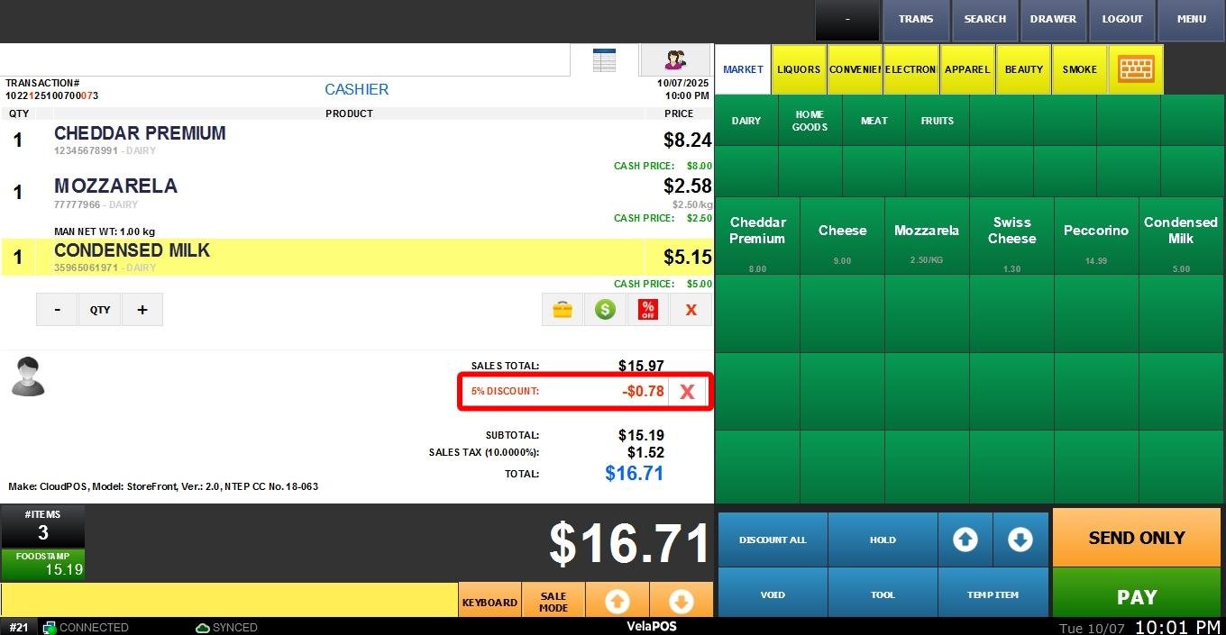 The discount for the entire sale will be displayed below the SALES TOTAL.