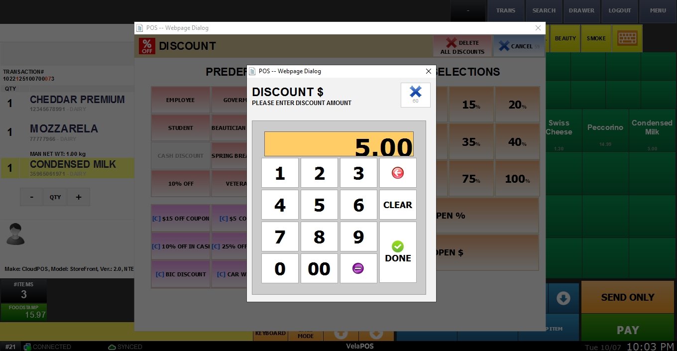 If selected OPEN % or OPEN $, input the value and click on DONE to apply the custom discount to the total sale.