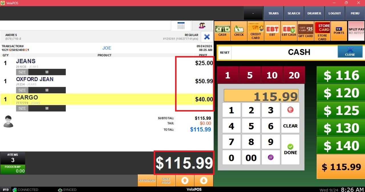 This feature displays both the credit card price and the cash price directly on the sale screen, giving customers a clear view of their payment options so they can choose how they prefer to pay.