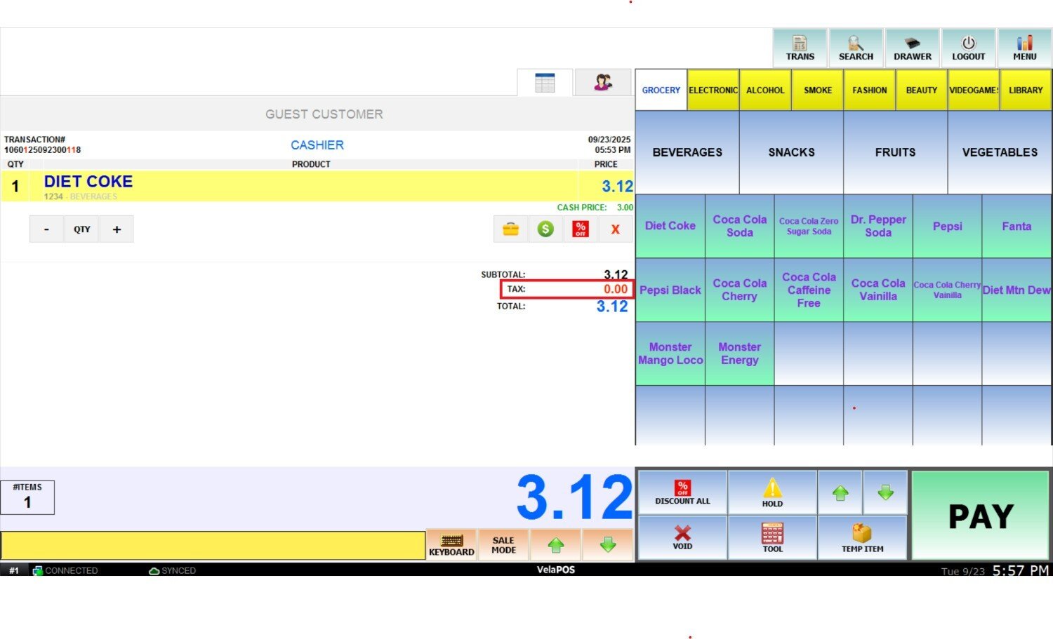 On the sales screen, you can see the applied TAX below the SUBTOTAL of the sale.