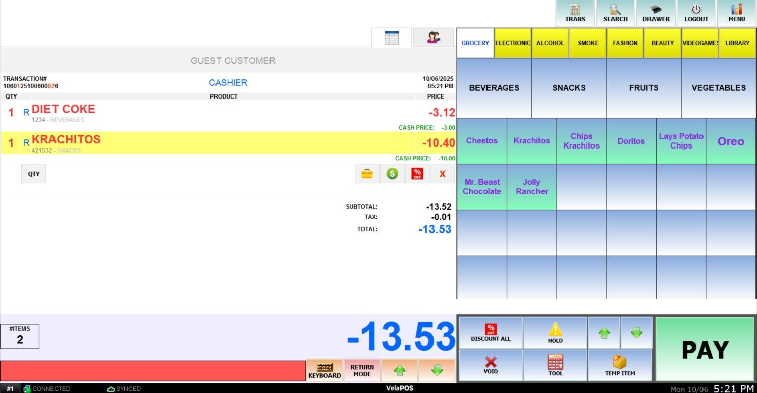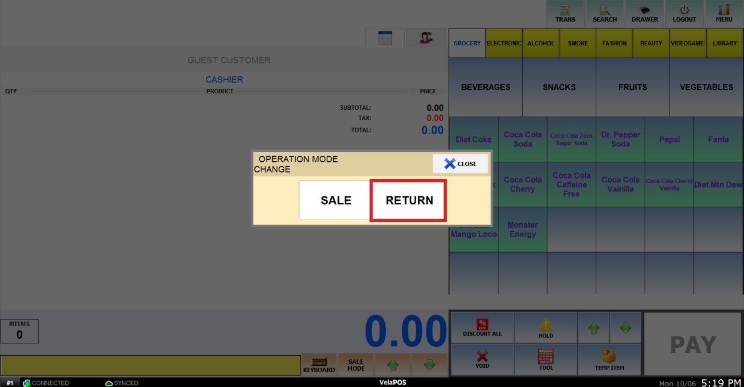 This sale mode allows you to process a return by scanning the items directly, without requiring a physical receipt or any additional transaction details.