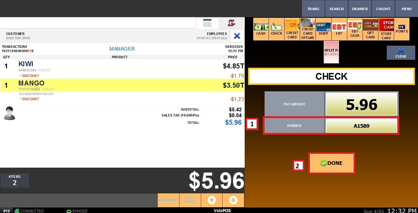 Fill the Check number option, then click on DONE.