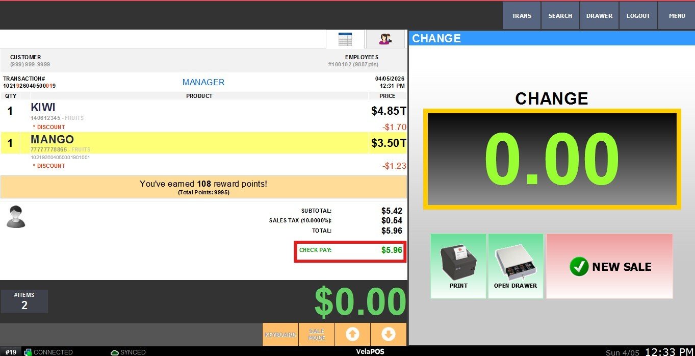 Main Screen> Number Pad> Sales Screen> Sale with rang up items > PAY> CHECK