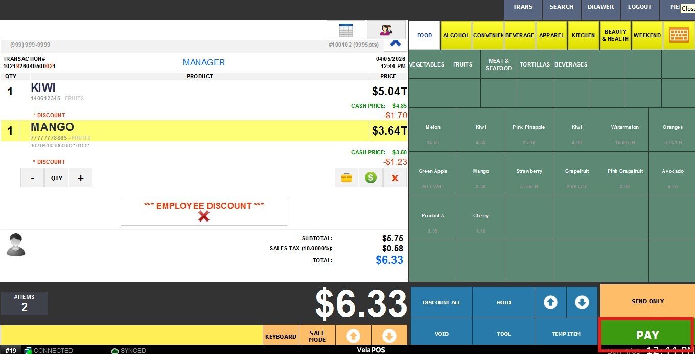 Once all items have been rung up, press on PAY