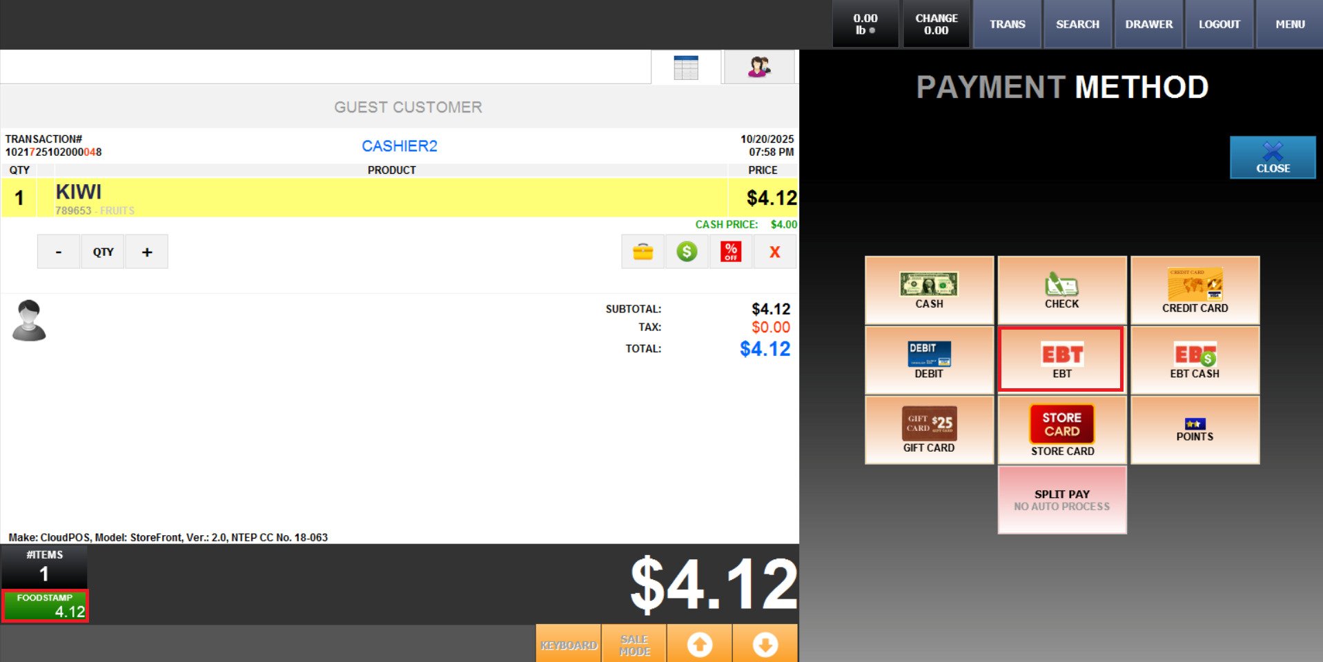 This guide explains how to process an EBT payment.