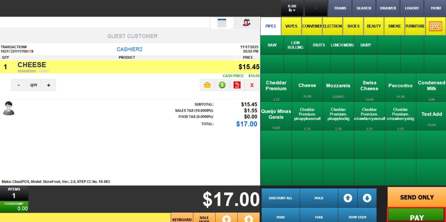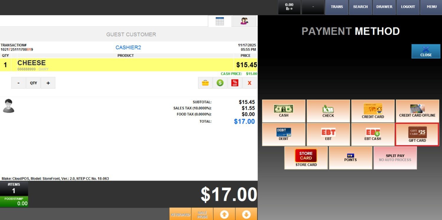 Note: If the Gift Card balance is less than the total amount, the system will ask for another payment method to cover the difference.