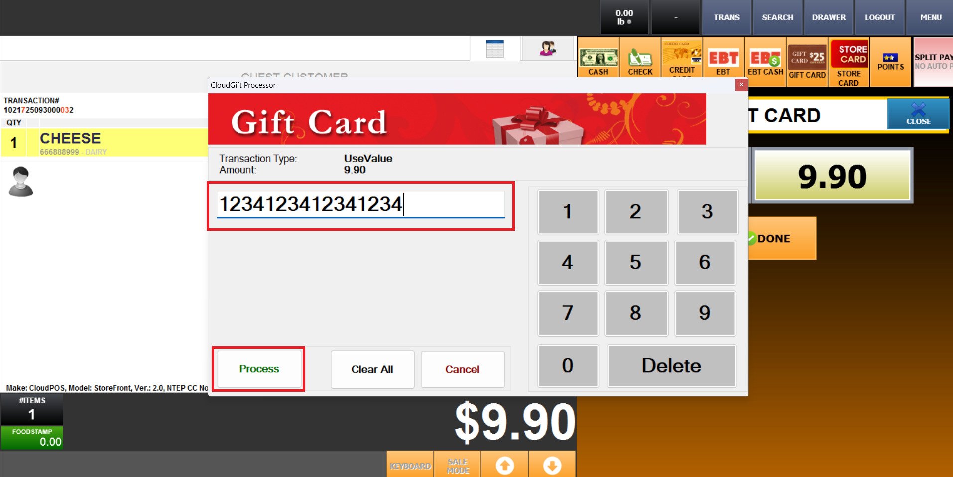 Note: if the GIFT CARD option doesn't appear, go to Gift Card Tender to enable the payment method.