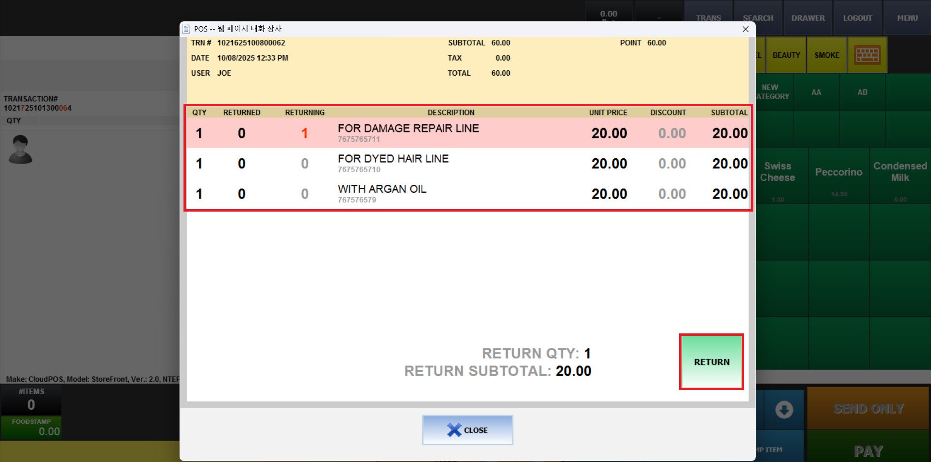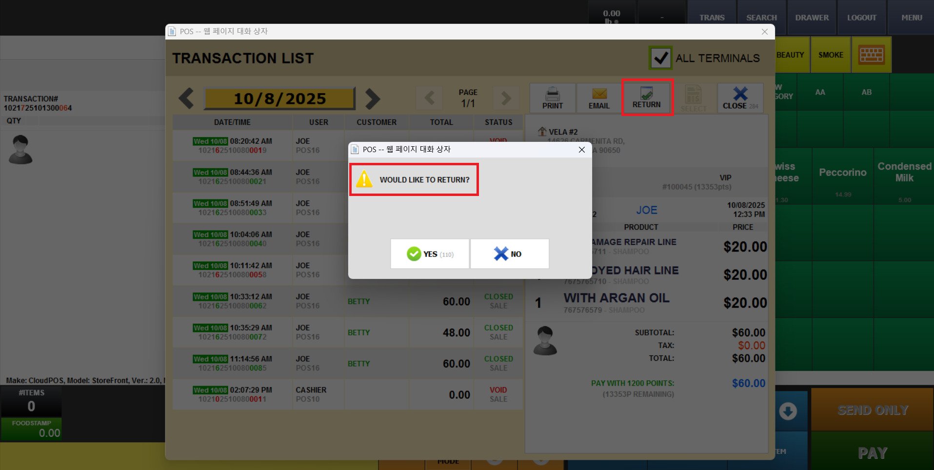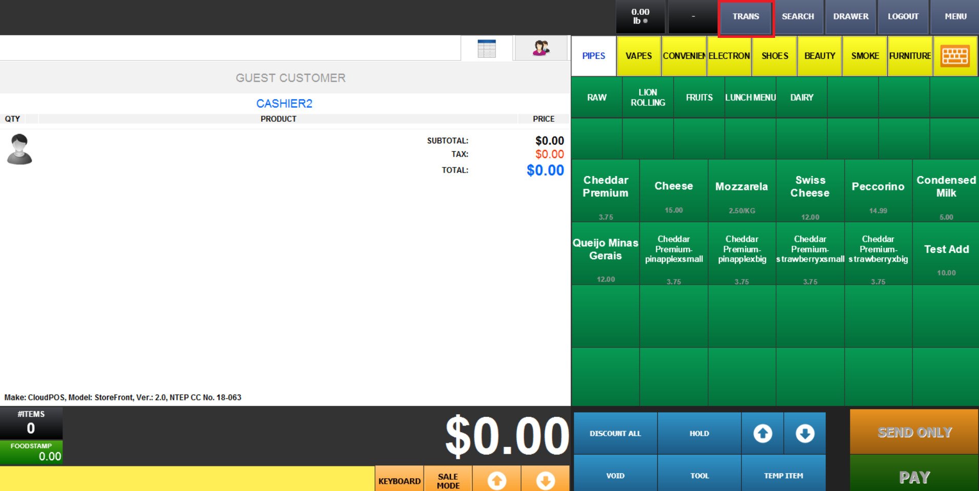 Main Screen> Number Pad> Sales Screen> TRANS List> RETURN