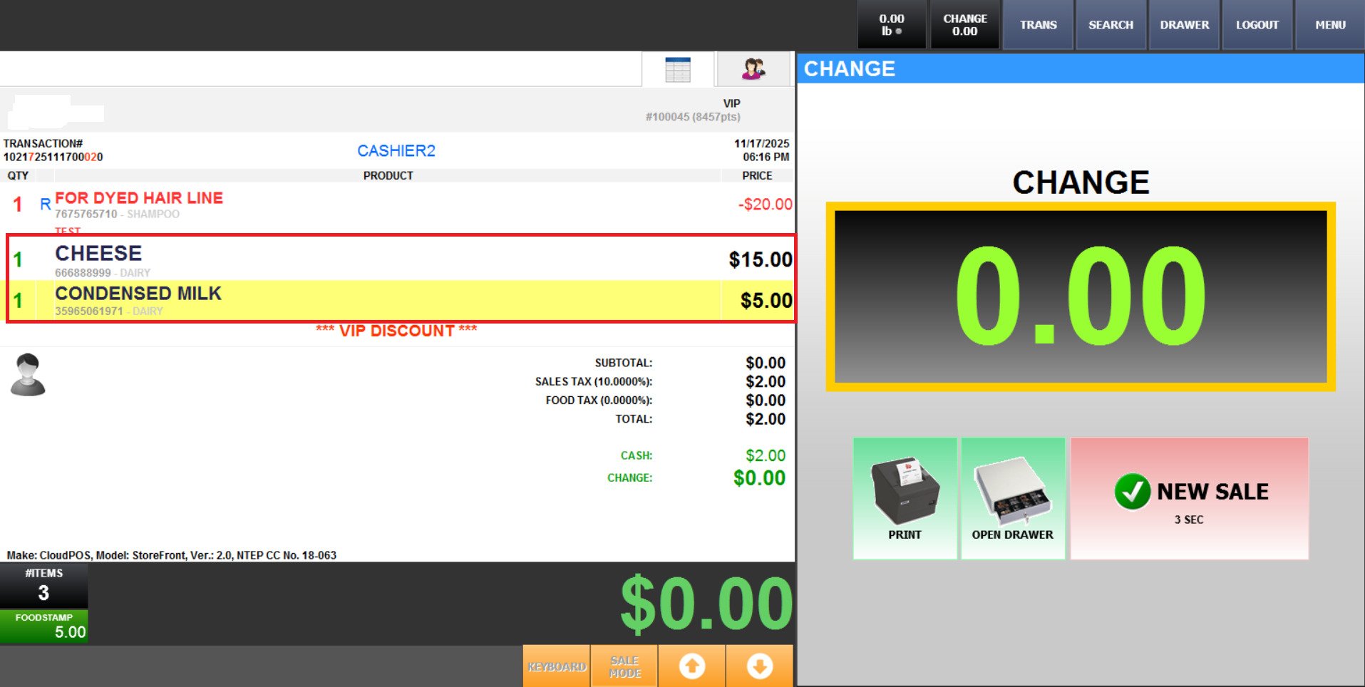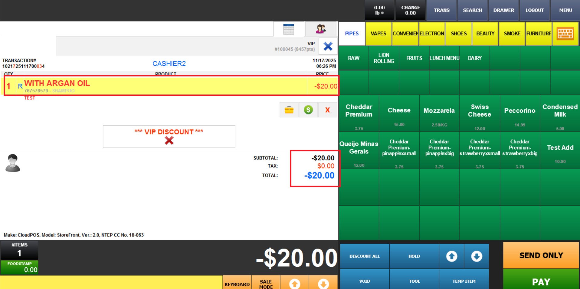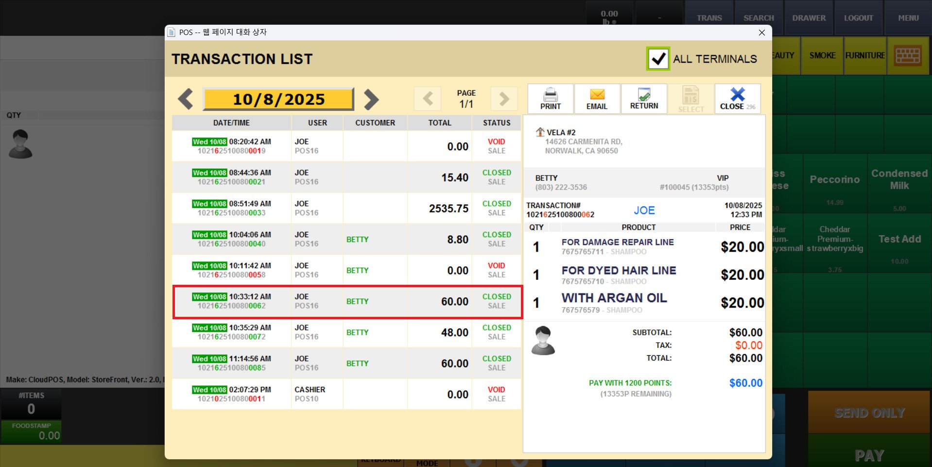 Main Screen> Number Pad> Sales Screen> TRANS List> RETURN