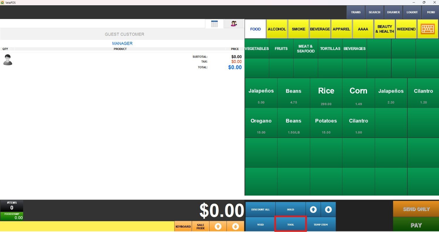 On the sales screen, click on TOOL.